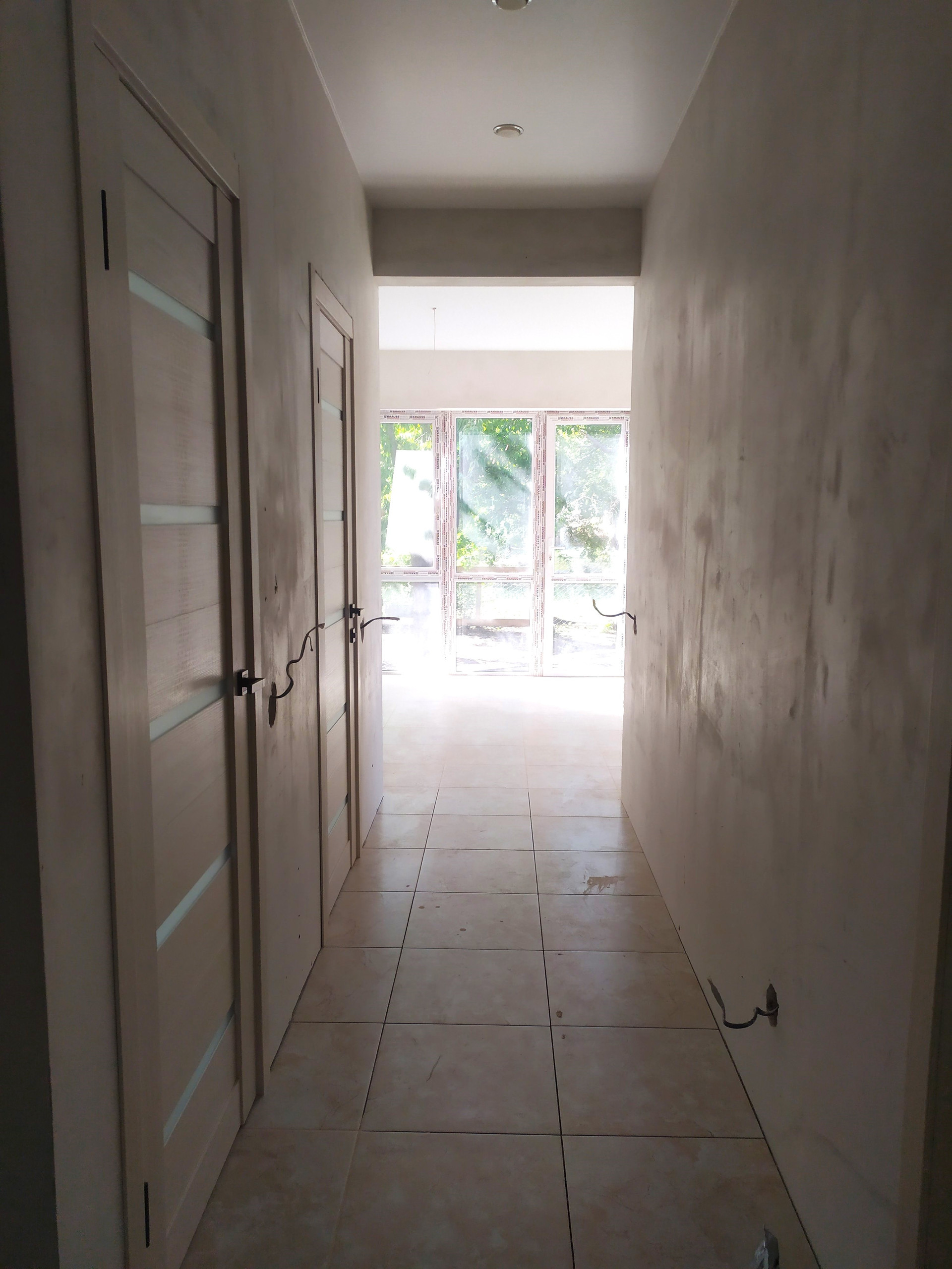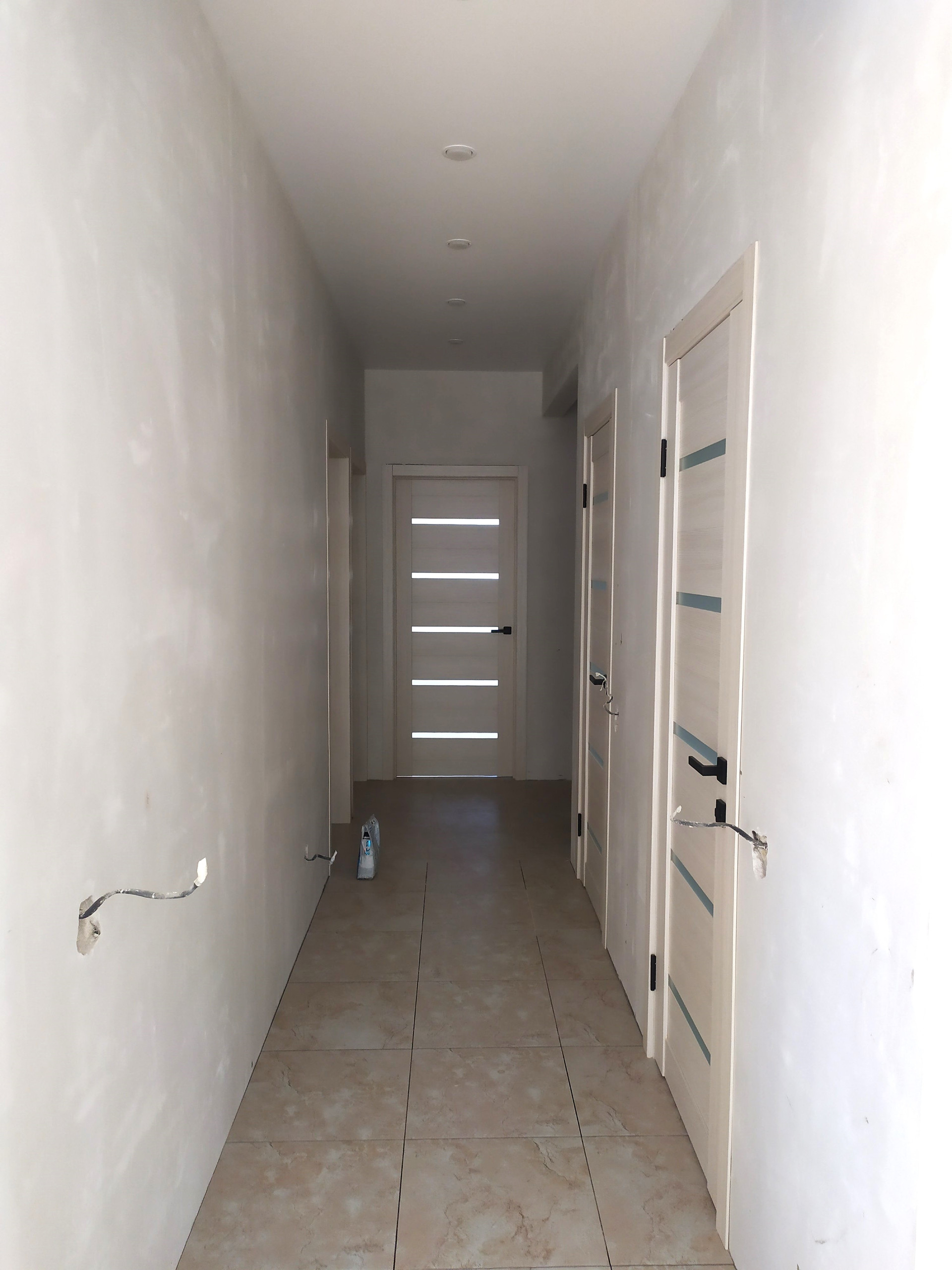 Внутри дома выполнен ремонт: на полу — ламинат, в зонах теплого пола — керамическая плитка, разводка коммуникаций, натяжные потолки, в комнатах — радиаторы отопления, установлены межкомнатные двери, санузел отделан керамической плиткой.