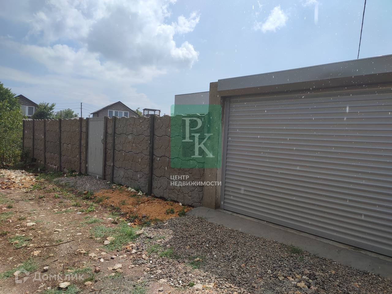 Участок по периметру огорожен еврозабором, размещена площадка под парковочное место, установлена электро роллета.