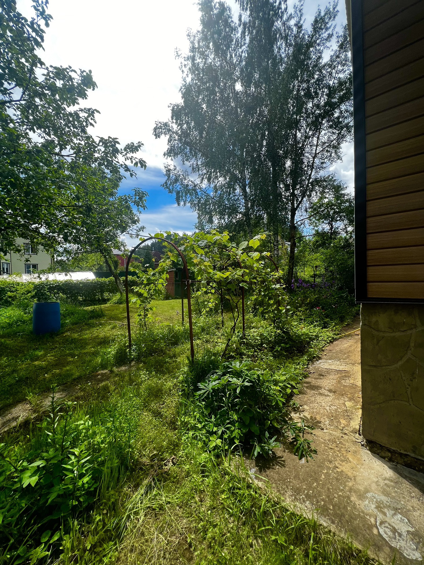 Участок облагорожен, растут плодовые деревья, кустарники и виноград.