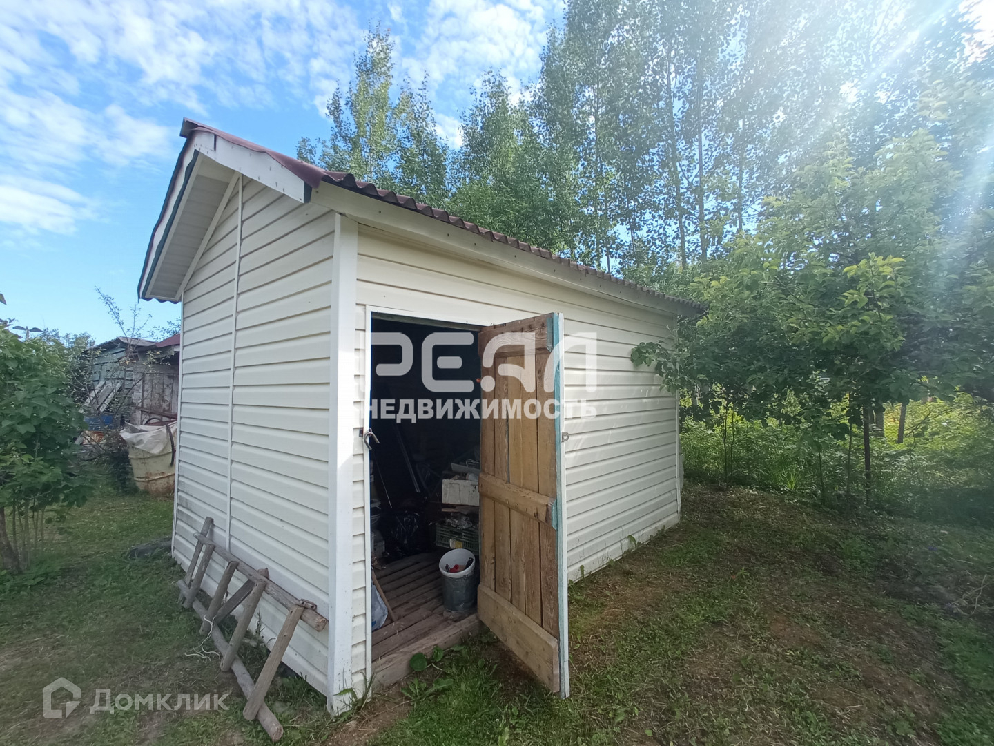 Участок высокий,  огорожен,  ровный и ухоженный. Скважина, электричество 220В с возможностью увеличения до 380В. Кроме дома на участке сарай для инструмента и садового инвентаря, баня, уличный туалет и большой дровяник, полностью заполненный дровами.