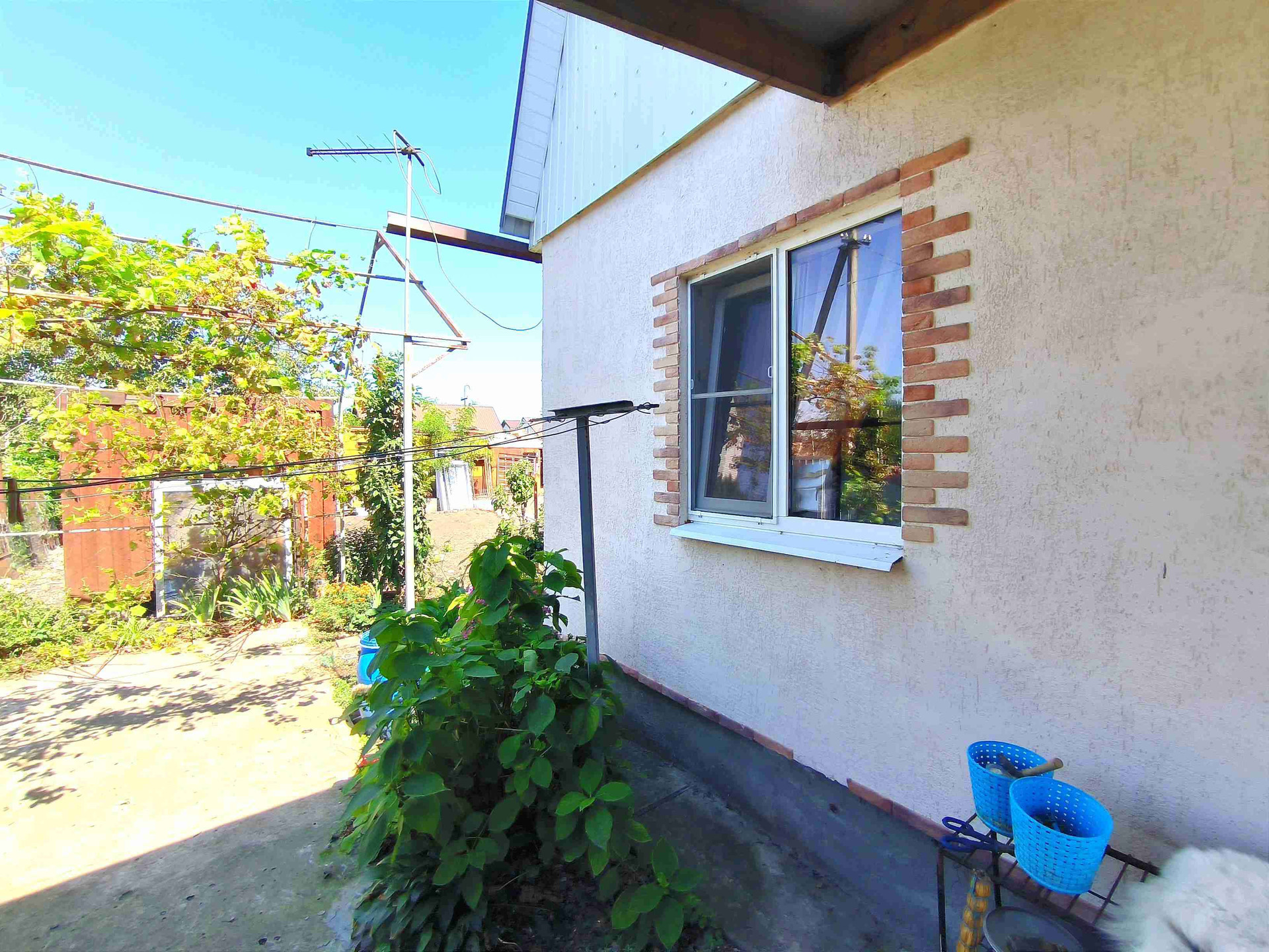 На территории есть: 2 черешни, Вишня, Алыча, Яблоня, Груша, Виноград
