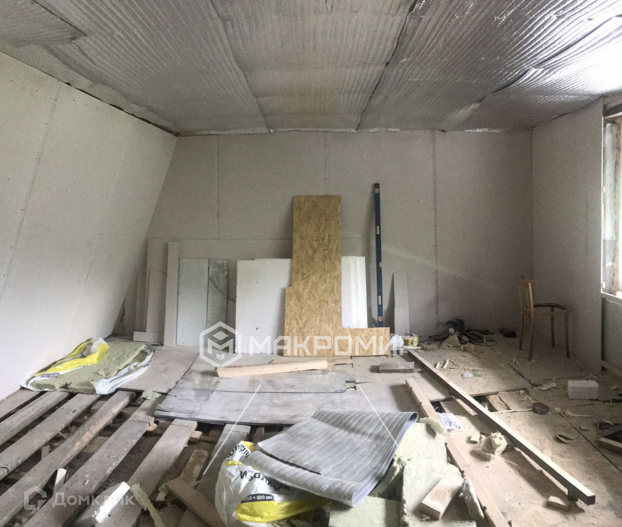 Дом новый 70м2. Стены: тес, ветроизоляция, вата базальтовая 150, ОСБ. Фундамент: 70 см сваи (тумба 40х40) засыпаны глиной 40 см. Пол: утеплитель 180, ОСБ. 1 этаж: комната, кухня, санузел. 2 этаж: простор для идей (нужен ремонт).