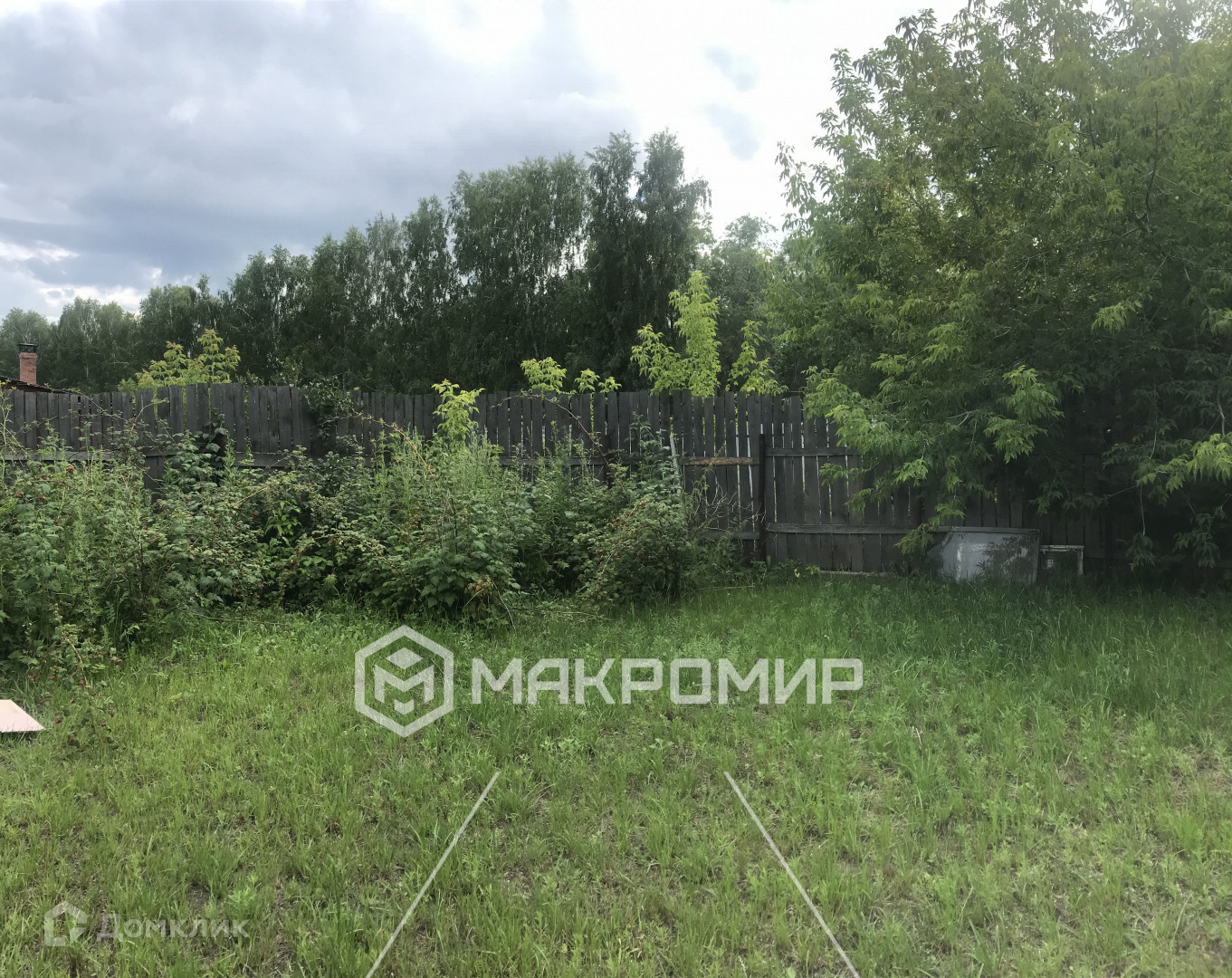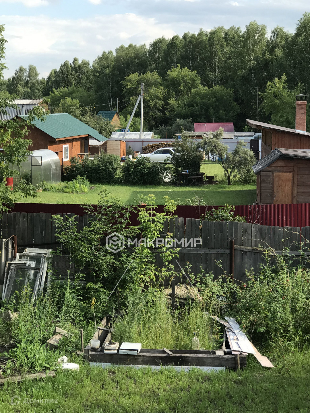 Участок ровный. Посадки: малина, смородина, цветы.