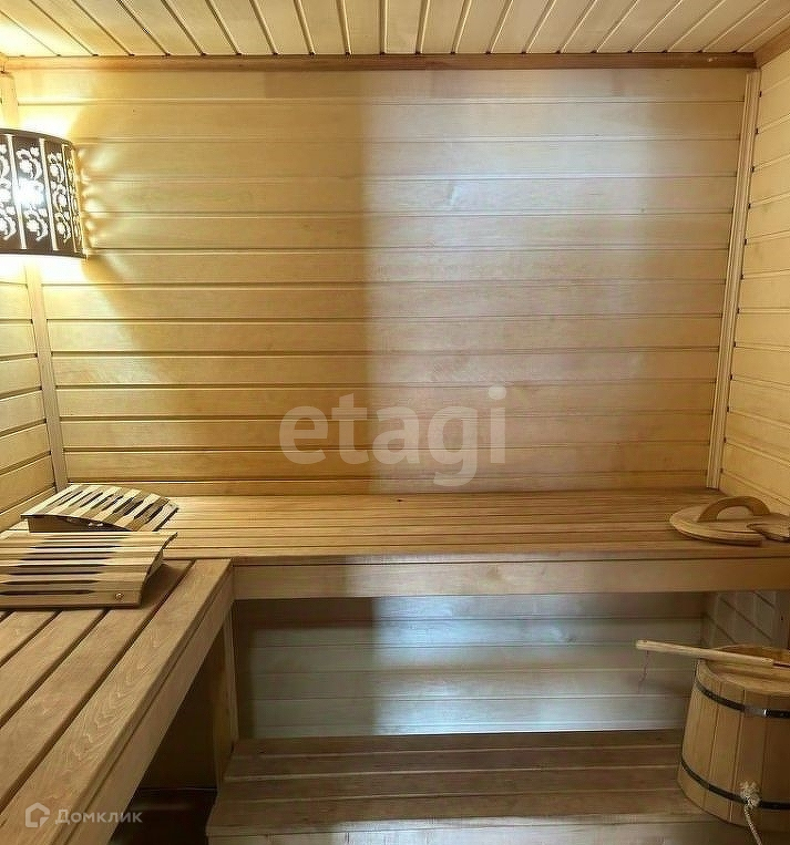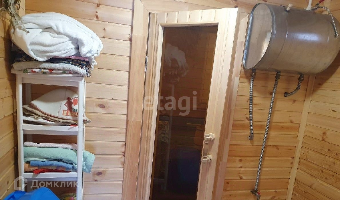 Дровяная сауна (парилка, моечная/душ). Разводка воды холодная/горячая. Печь Теплолюкс-Гейзер (мелкодисперсный пар), подача дров с веранды.