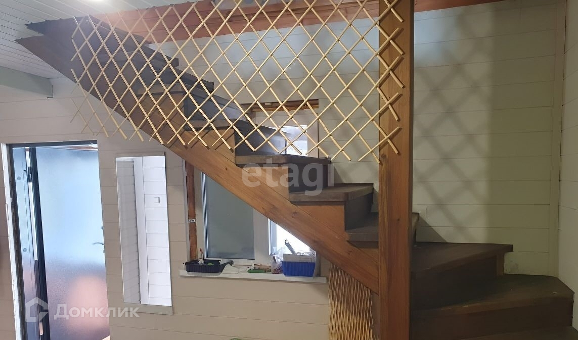 Удобная деревянная полноценная лестница на 2й этаж.