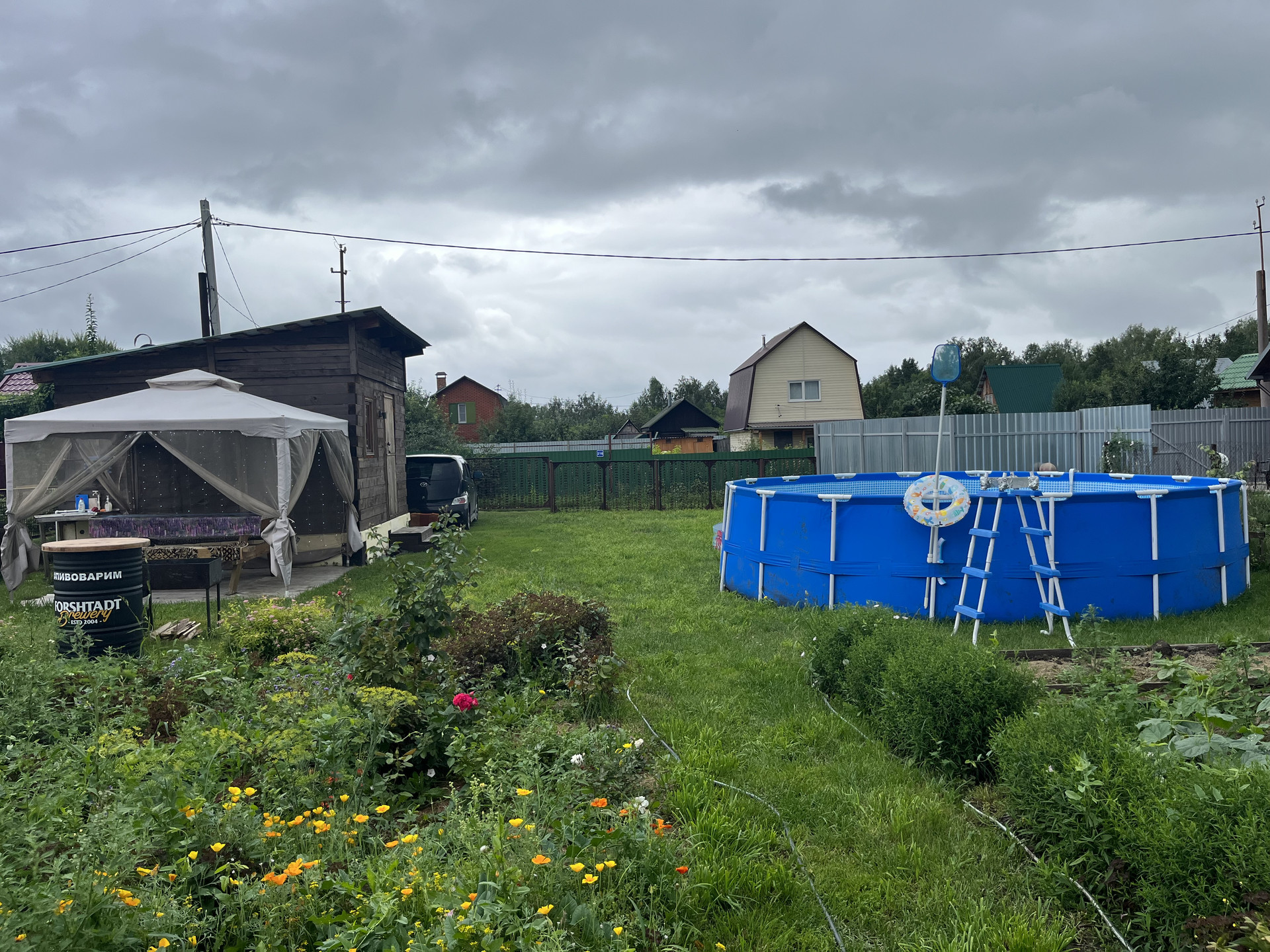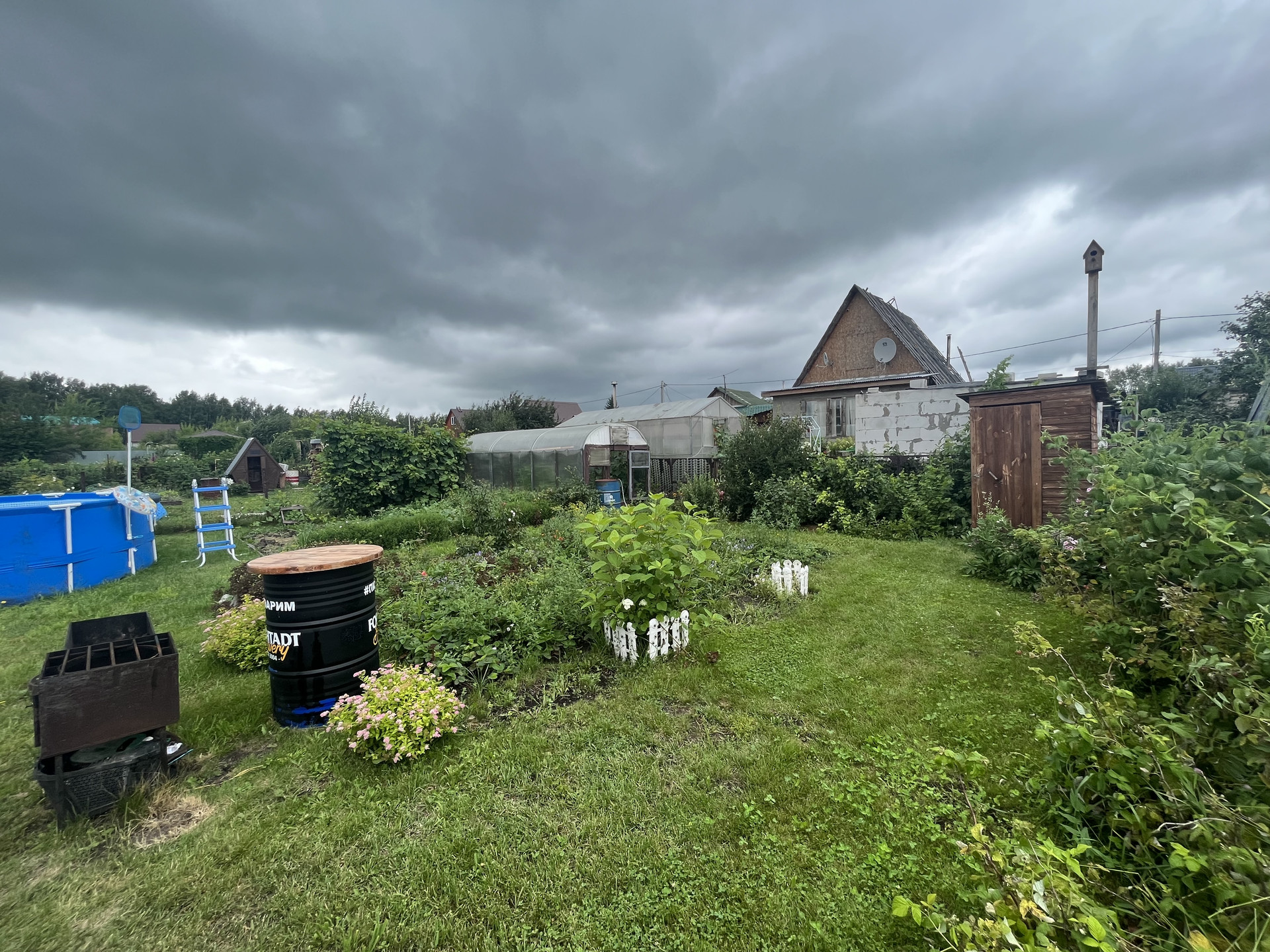 Отличная Баня построена в 2022 году из бруса 10*15 см, большая зона отдыха, помывочная и очень жаркая парилка с отличной печью, которая прослужит долгие годы! Огромный Круглый Каркасный Бассейн размером 5,49 метра, высота 1,35 метра позволит вам комфортно плавать и наслаждаться тишиной загородной жизни. Большая теплица, обшитая поликарбонатом в 2024 году, вместительная аккуратная бытовка для хранения инвентаря и дров, шатер размером 3*3 м. с москитной сеткой с большим добротным столом, где вы можете собрать большую компанию, мангал, печь под любой казан сделана собственноручно из толстого металла, мобильная барная стойка для удобства во время готовки!