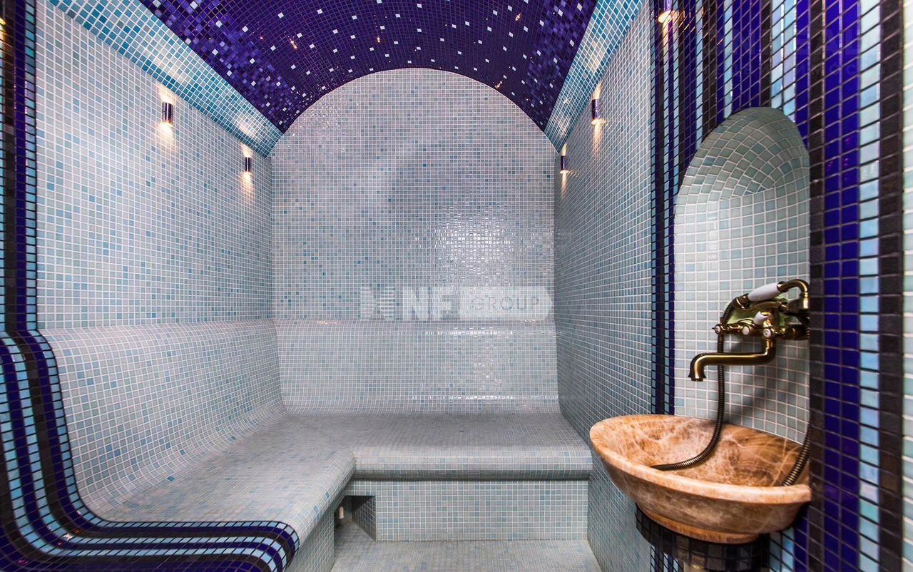 1 этаж: xoлл, cпальня с c\у и гардepoбнoй, куxня-столовaя-гoстиная, с\у, бассейн с хaмaмом и выxoдом нa улицу, душ;