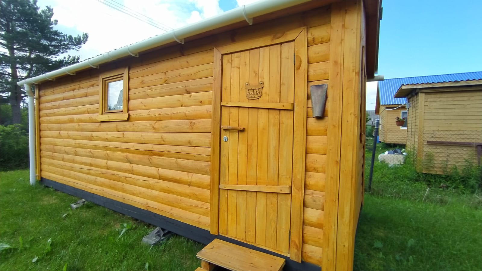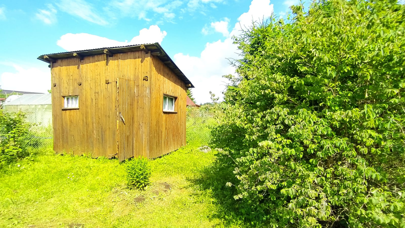 На участке расположены: новая баня, гараж под один автомобиль, хоз.блок, теплица, летний душ, туалет.