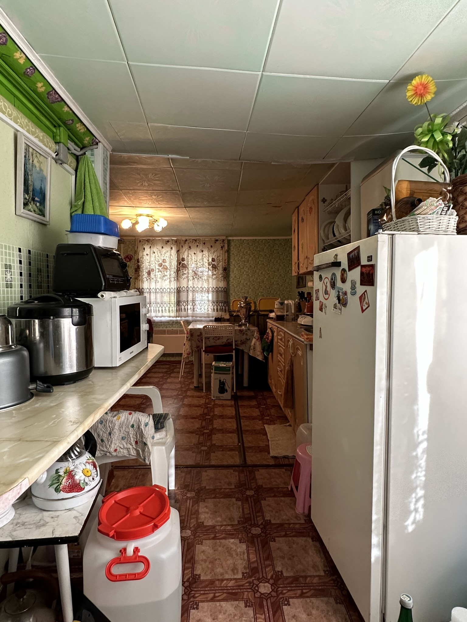 - Просторная кухня, оснащенная газовой плитой, бойлером и двумя холодильниками