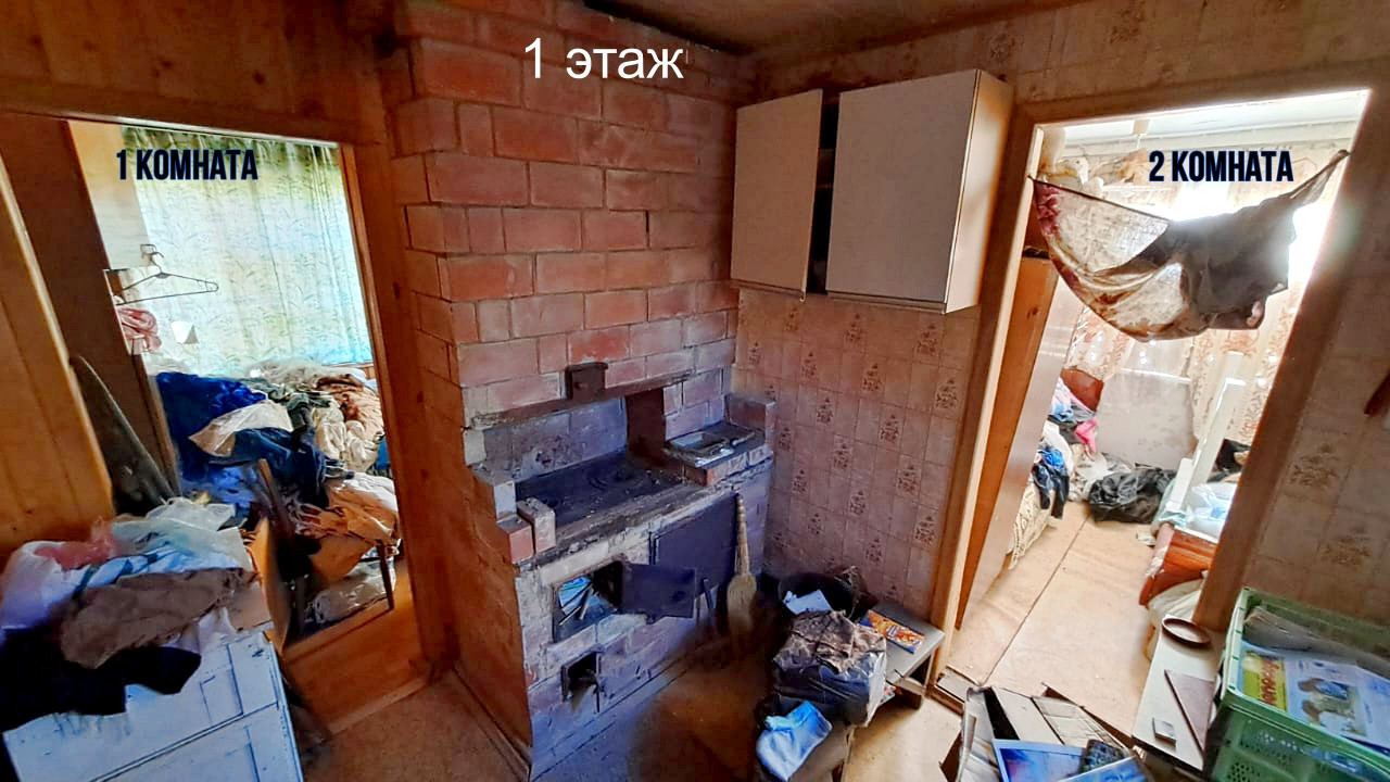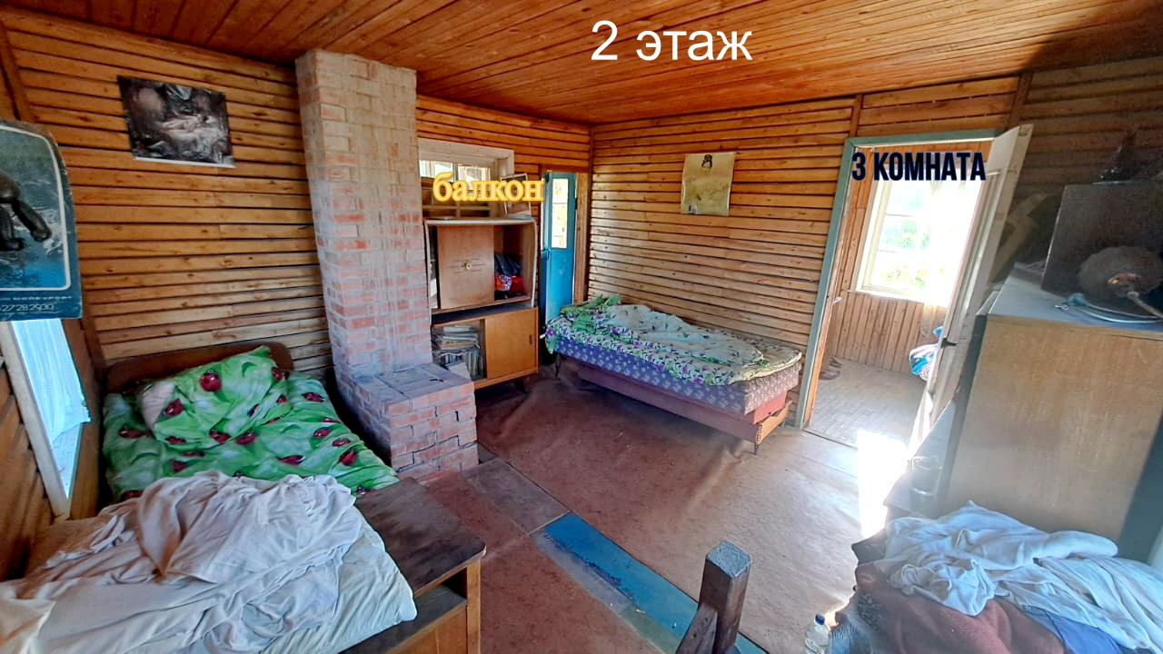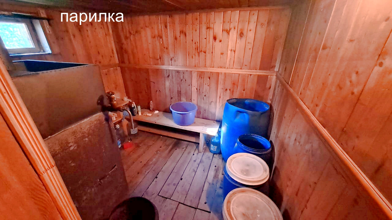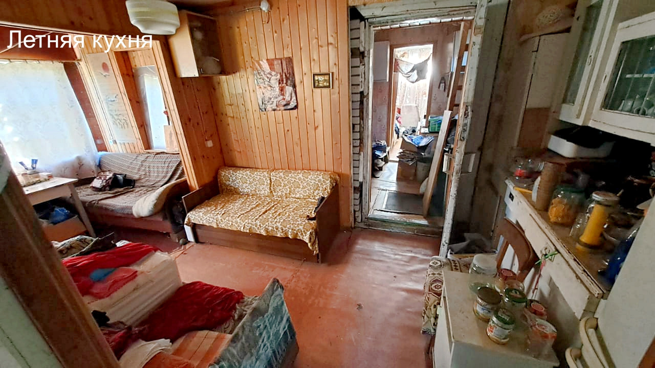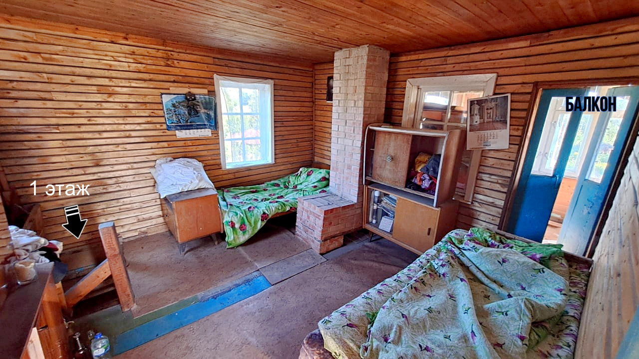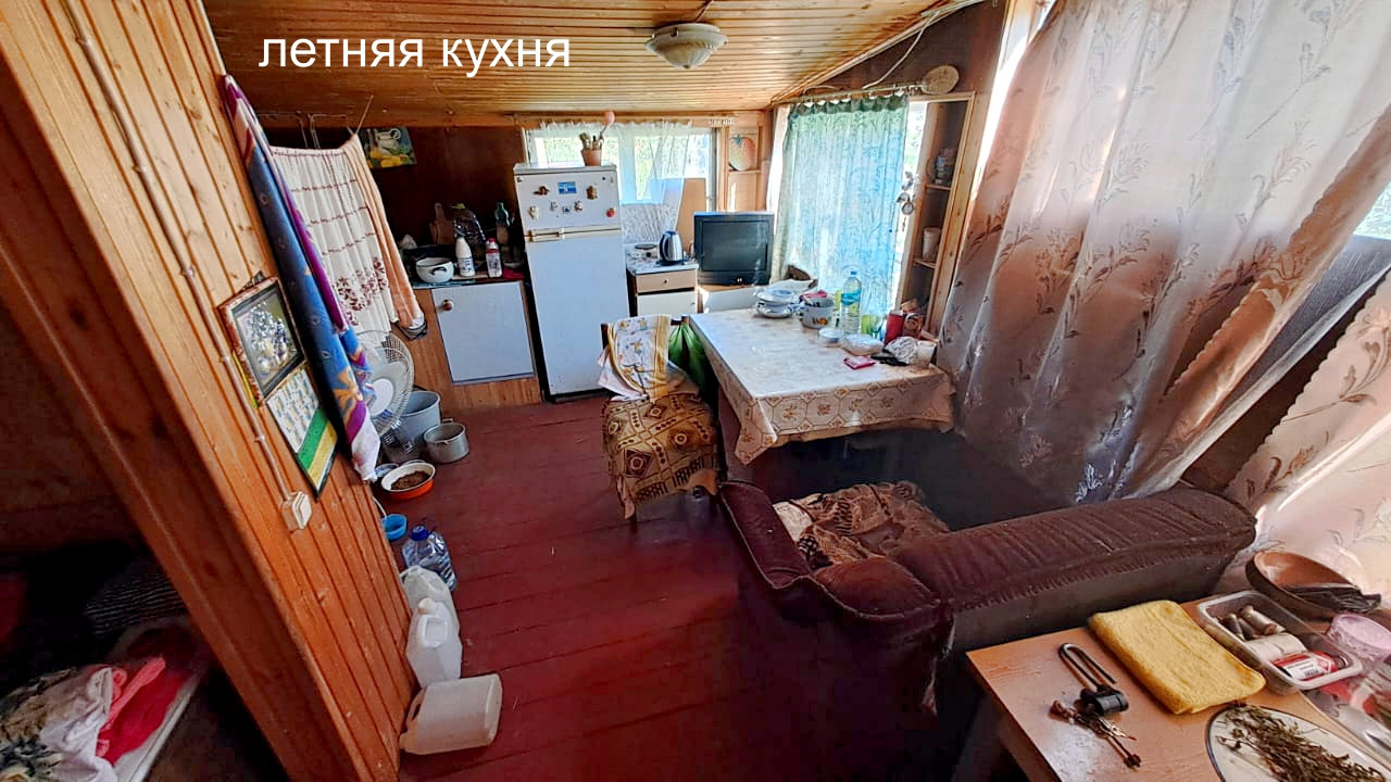 Дом построен в 1995 году. Расположен на ленточном фундаменте, сделана бетонная отмостка. Первый этаж выложен из кирпича, второй каркасный. Отапливается печкой, которая не дымит, периодически протапливается. На первом этаже расположены две жилые комнаты и холл. На втором этаже одна жилая комната, балкон и холл. К дому пристроена летняя кухня, которую можно утеплить. В сарае имеется киссон для хранения заготовок на зиму.