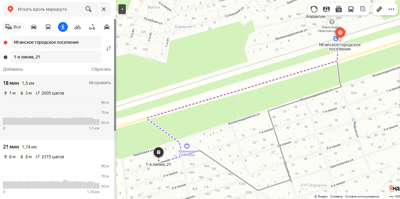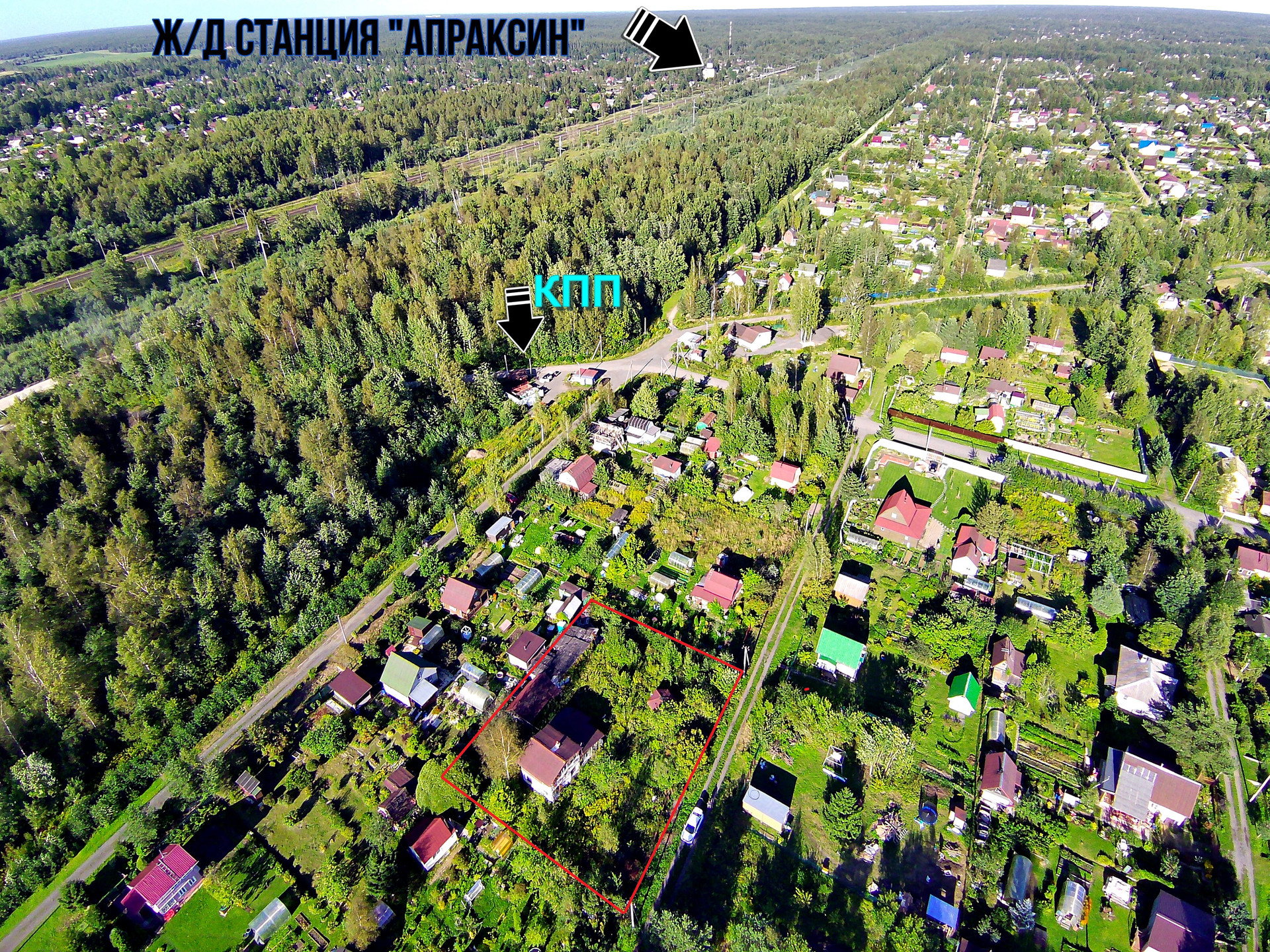 До С-Пб (КАД) -57 км. До ж/д станции "Апраксин" -1,5 км. До карьера "Малукса" с чистой водой и песочными пляжами -10 км.
