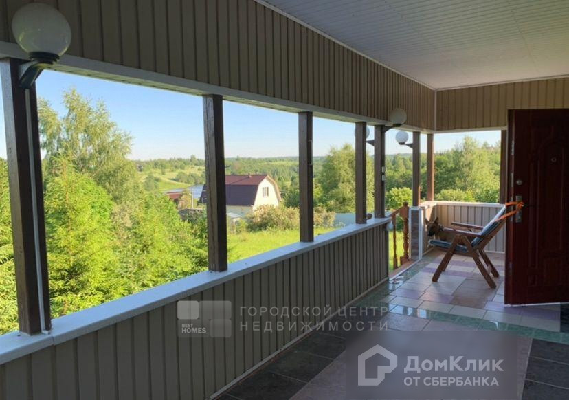Высокая большая крытая веранда (18 м2) с видом на участок.
