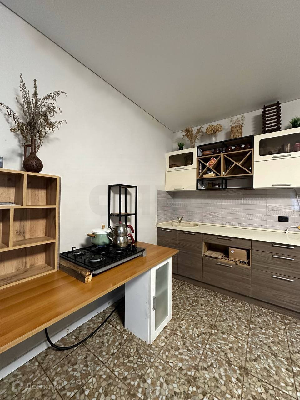 1 этаж : Керамогранит, теплые полы.