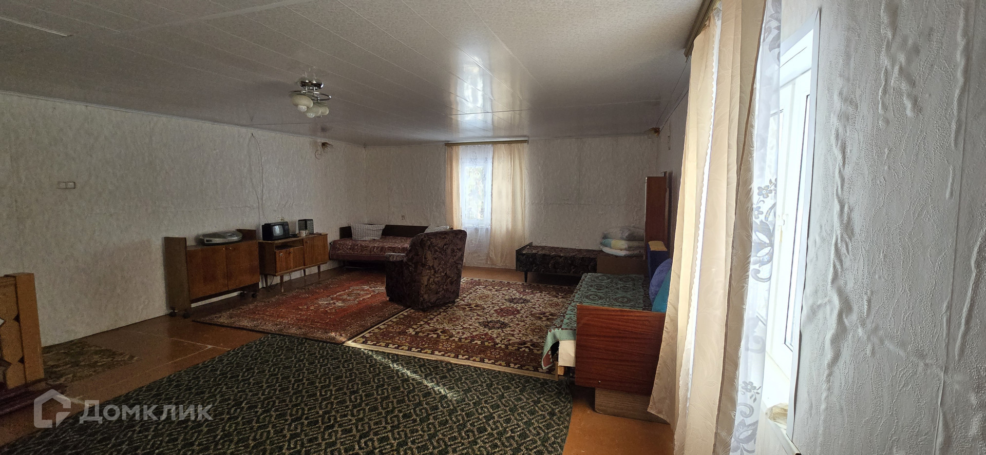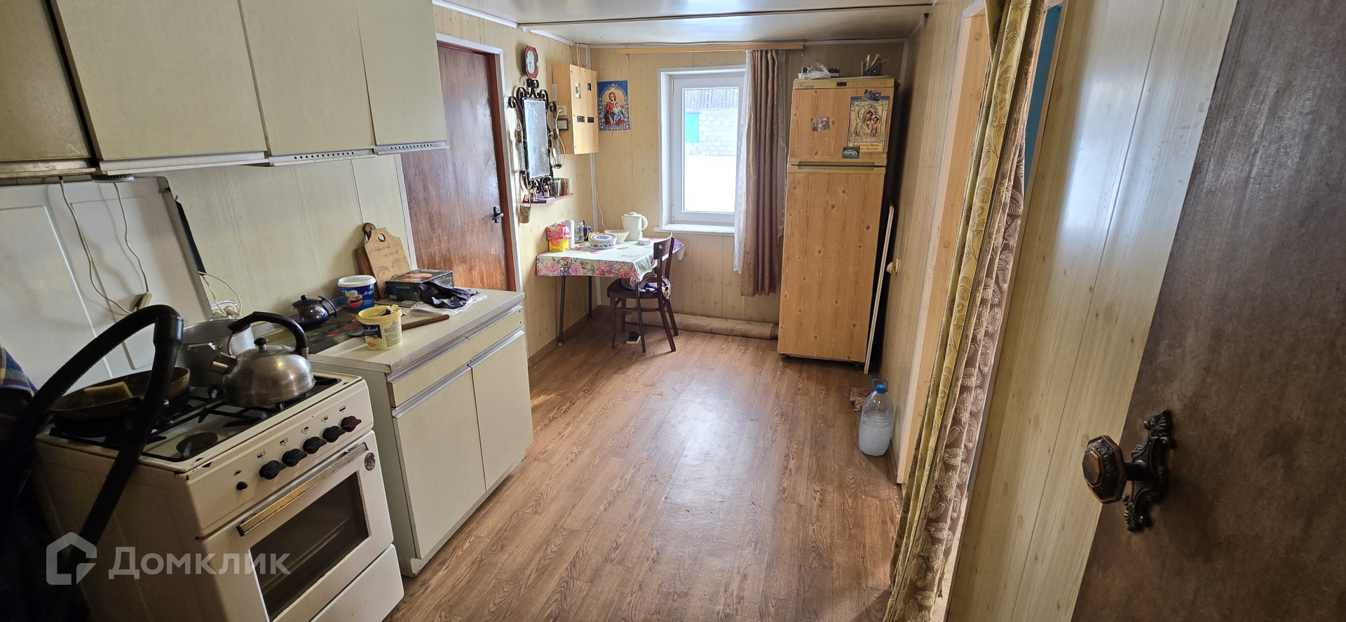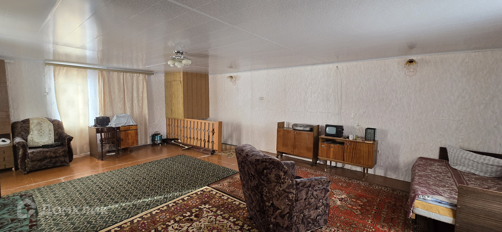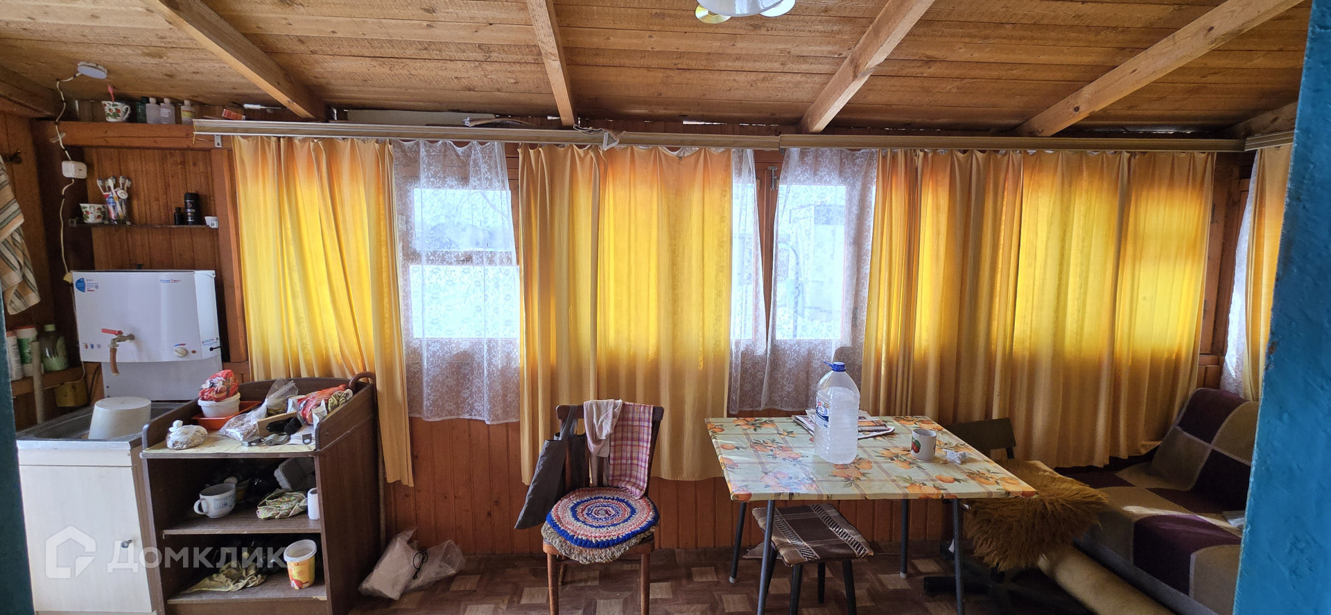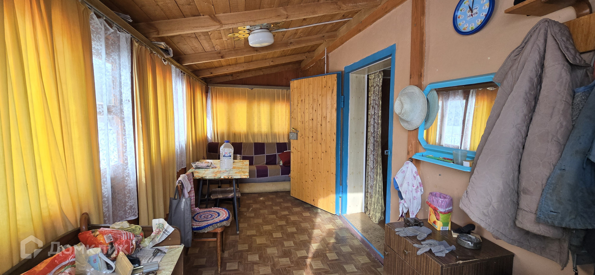 На первом этаже расположена терраса, кухня и большой зал, на второй этаж ведет очень удобная лестница, где находится вторая, очень просторная комната, при желании можно сделать две.