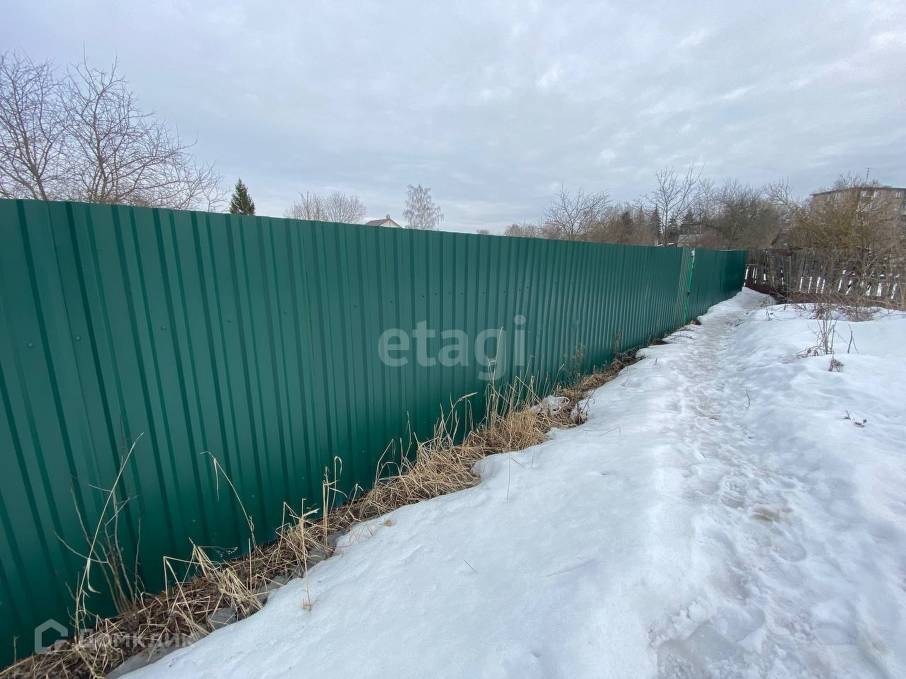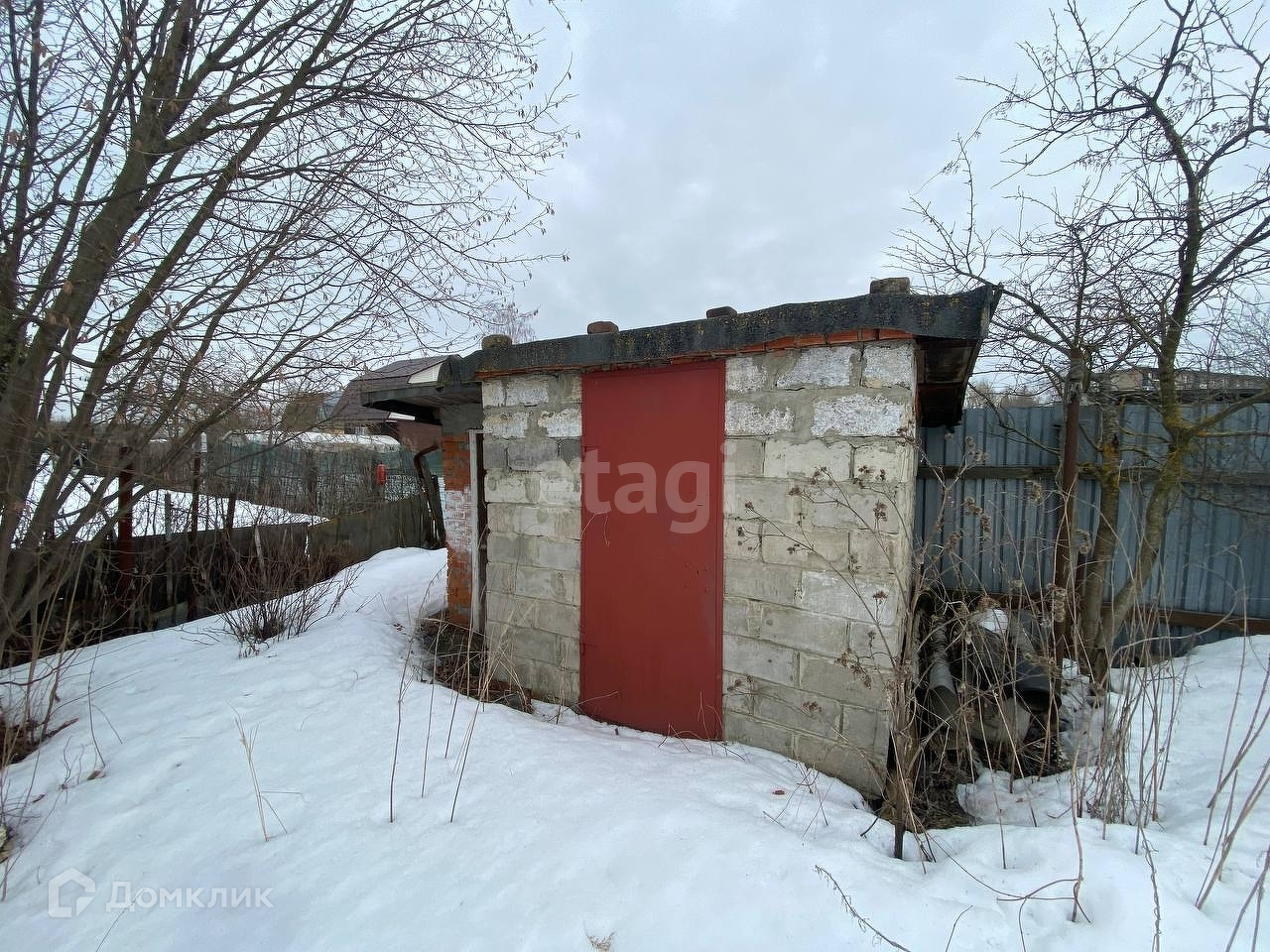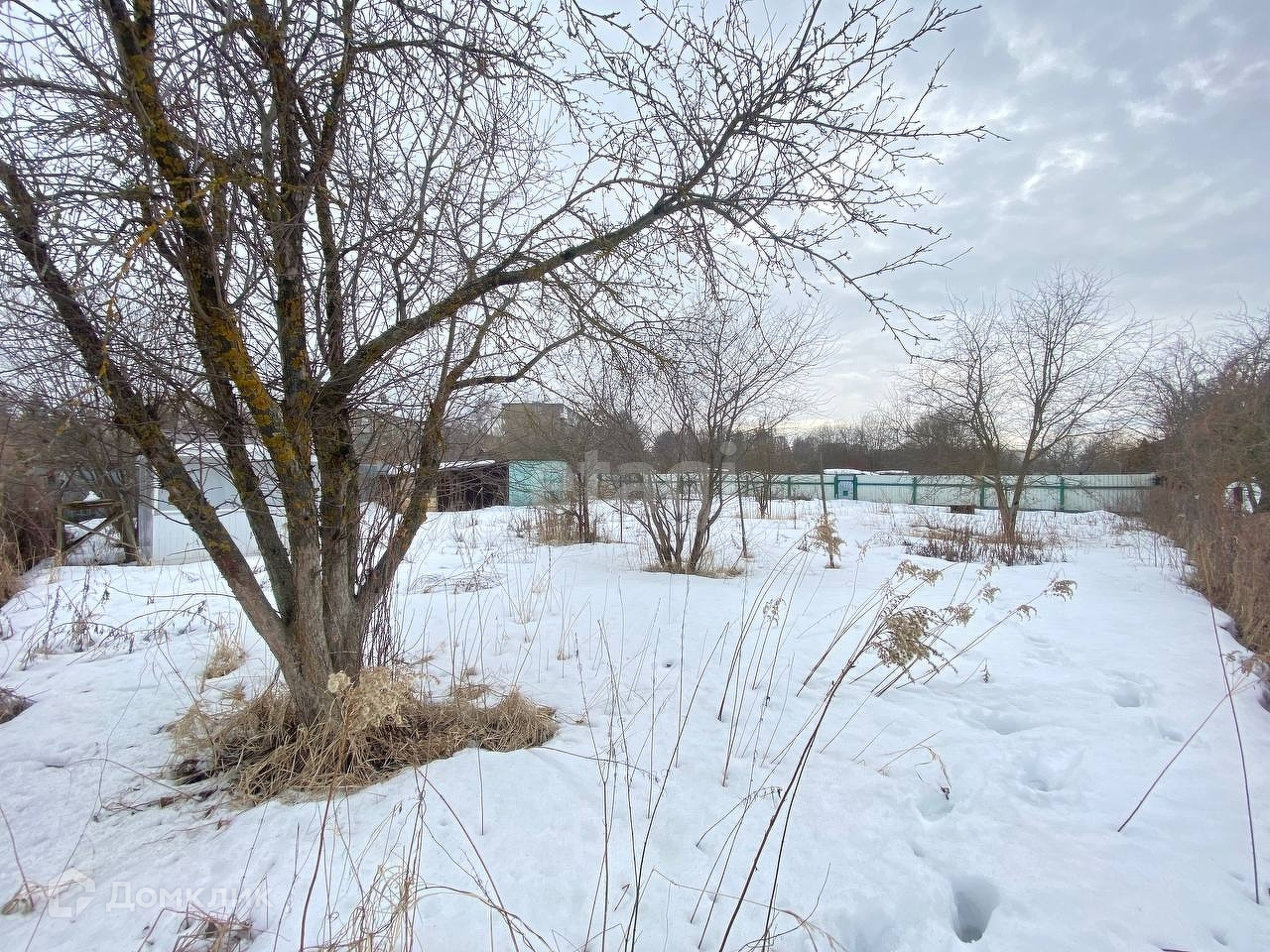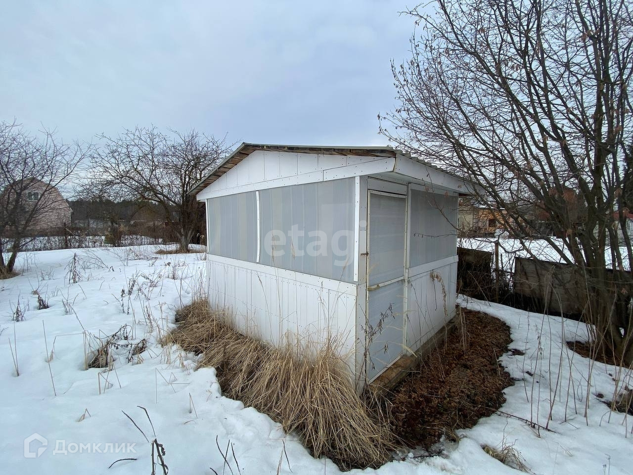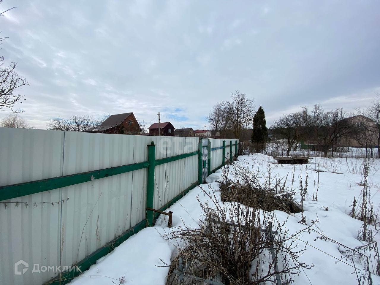 По территории участка деревья и кустарники.