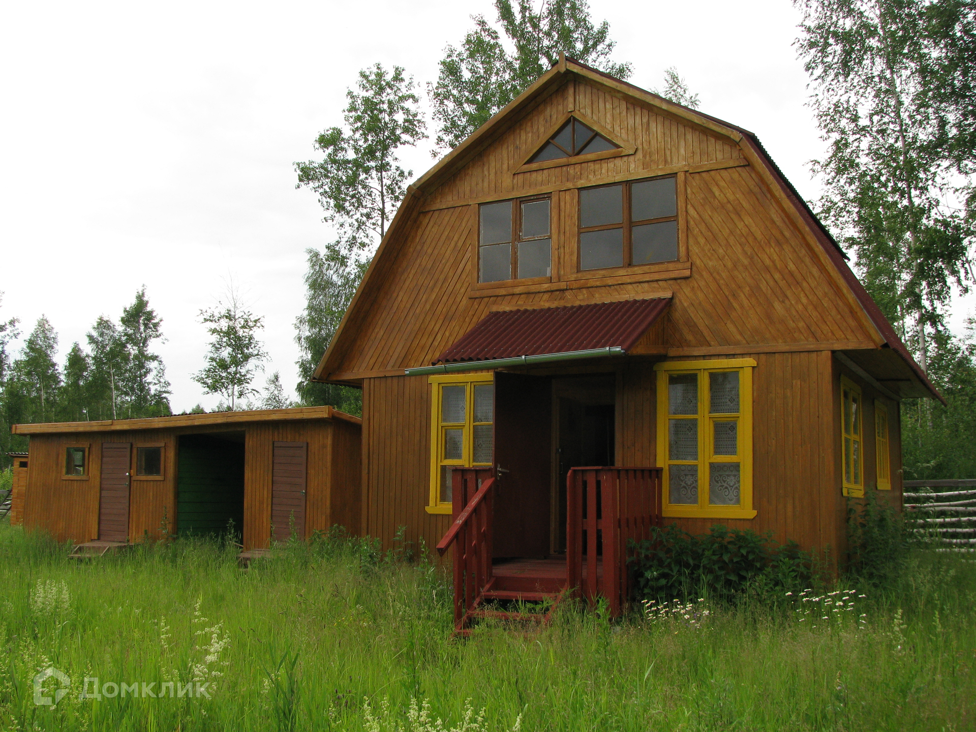 На участке построен полутораэтажный летний дом 6х6, технический колодец, помещение под душ, сарай. В доме выложена печь. Дом внутри и снаружи обит вагонкой.