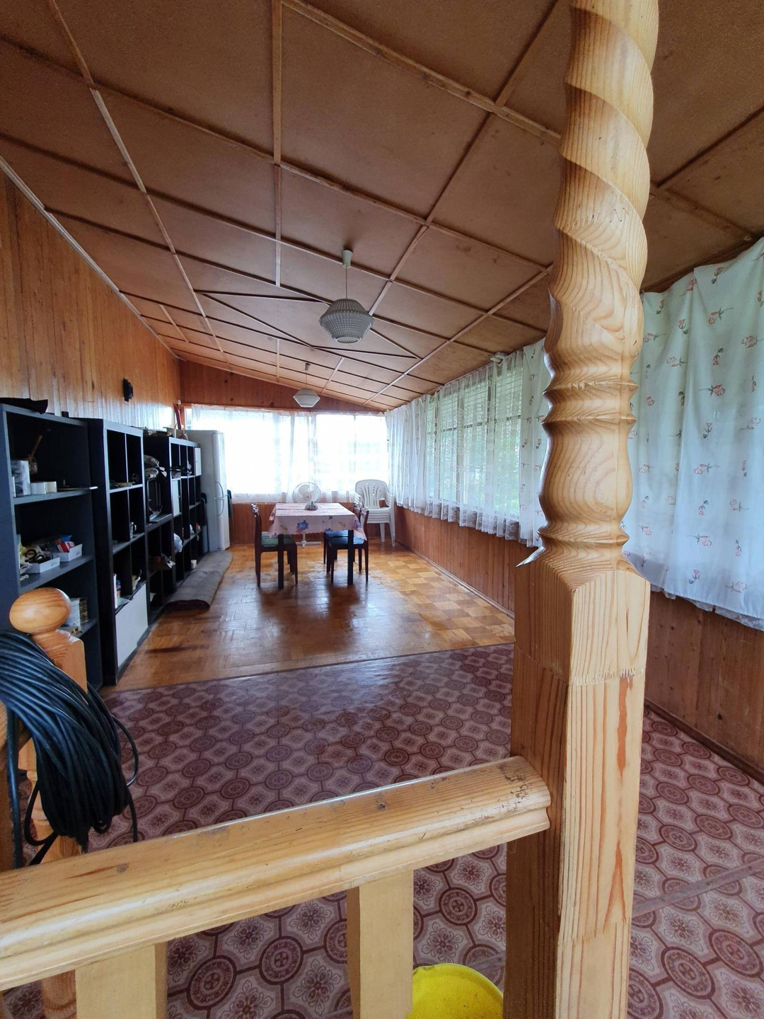 Дом 152 кв. м для круглогодичного проживания имеет 3 этажа: в цокольном этаже ( из кирпича с бетонными перекрытиями) расположены – сауна(электрическая), комната отдыха, душевая, санузел, топочная, гараж. Второй и третий этаж каркасно-щитовой утепленный, обшит сайдингом). На втором этаже расположены: кухня, гостинная, спальня, санузел, веранда. На третьем этаже 2 комнаты.Ситема отопления разведена по всему дому. Для отопления установлены твердотопливный двухконтурный котел, газовый двухконтурный котел, электрический котел. В дом заведена вода из скважины 12 метров, также на участок в летнее время подается вода из централизованного водопровода СНТ. Электричество 15 квт., счетчик двухтарифный.