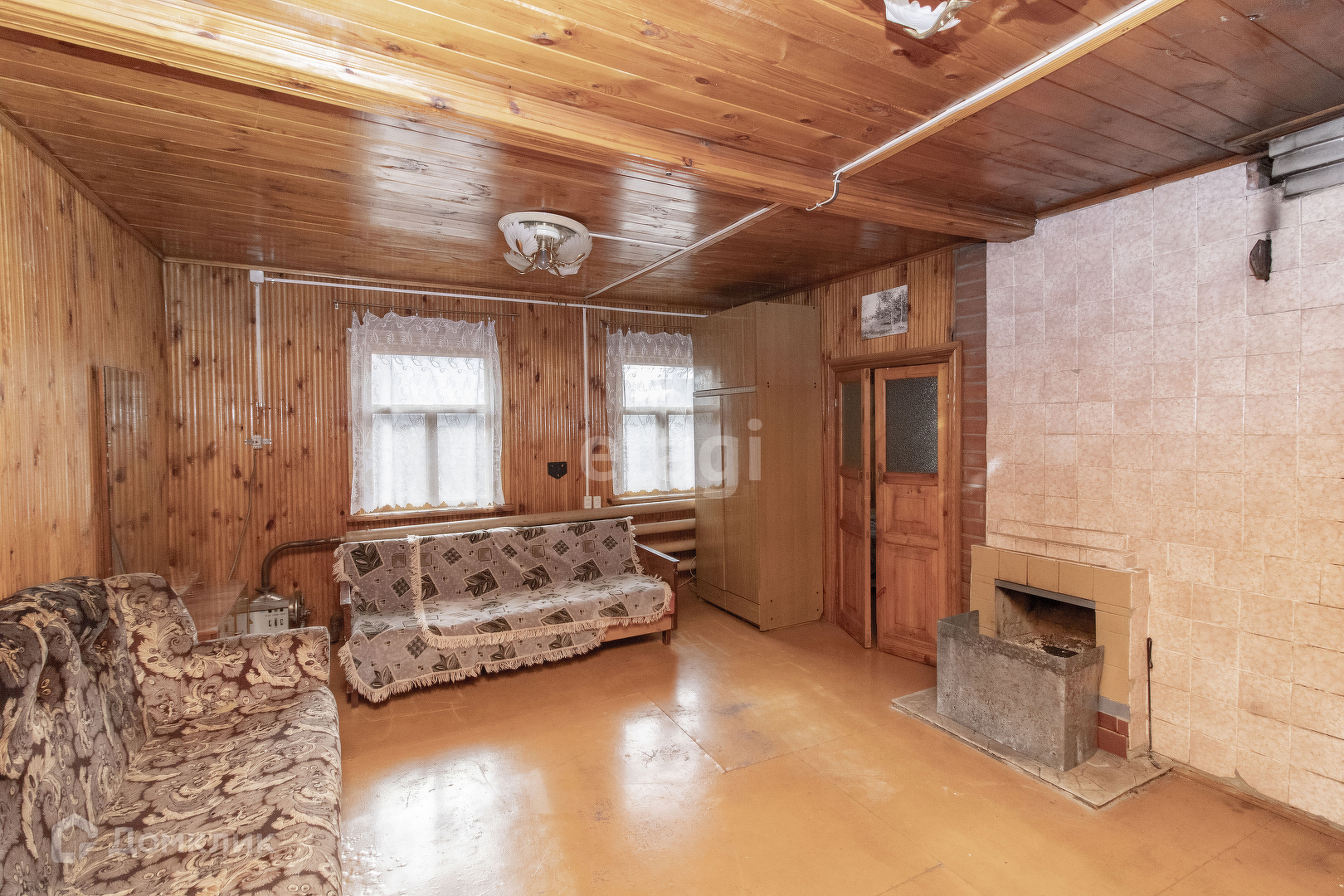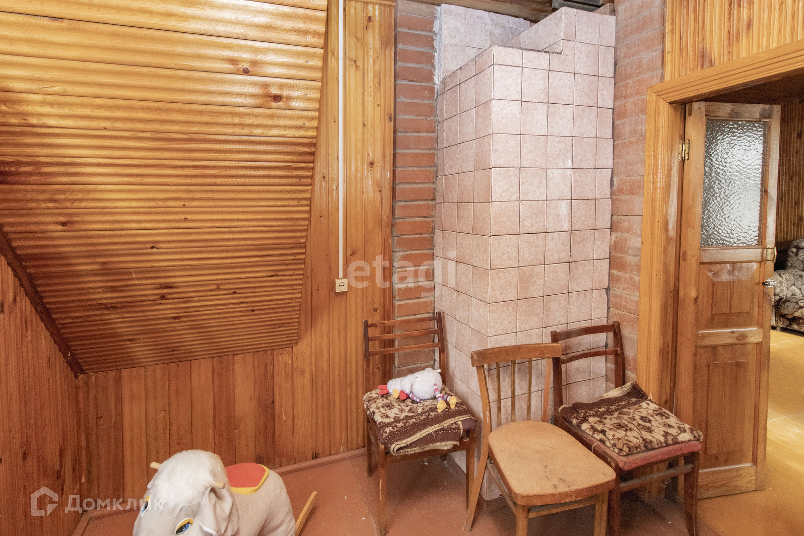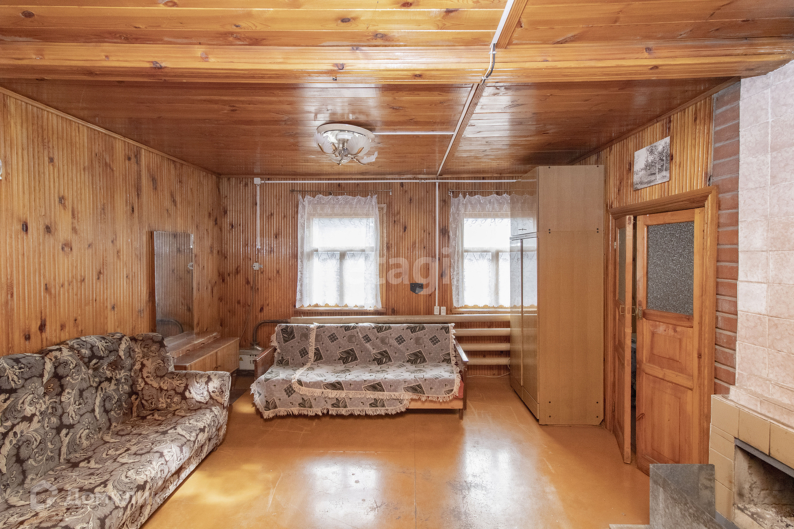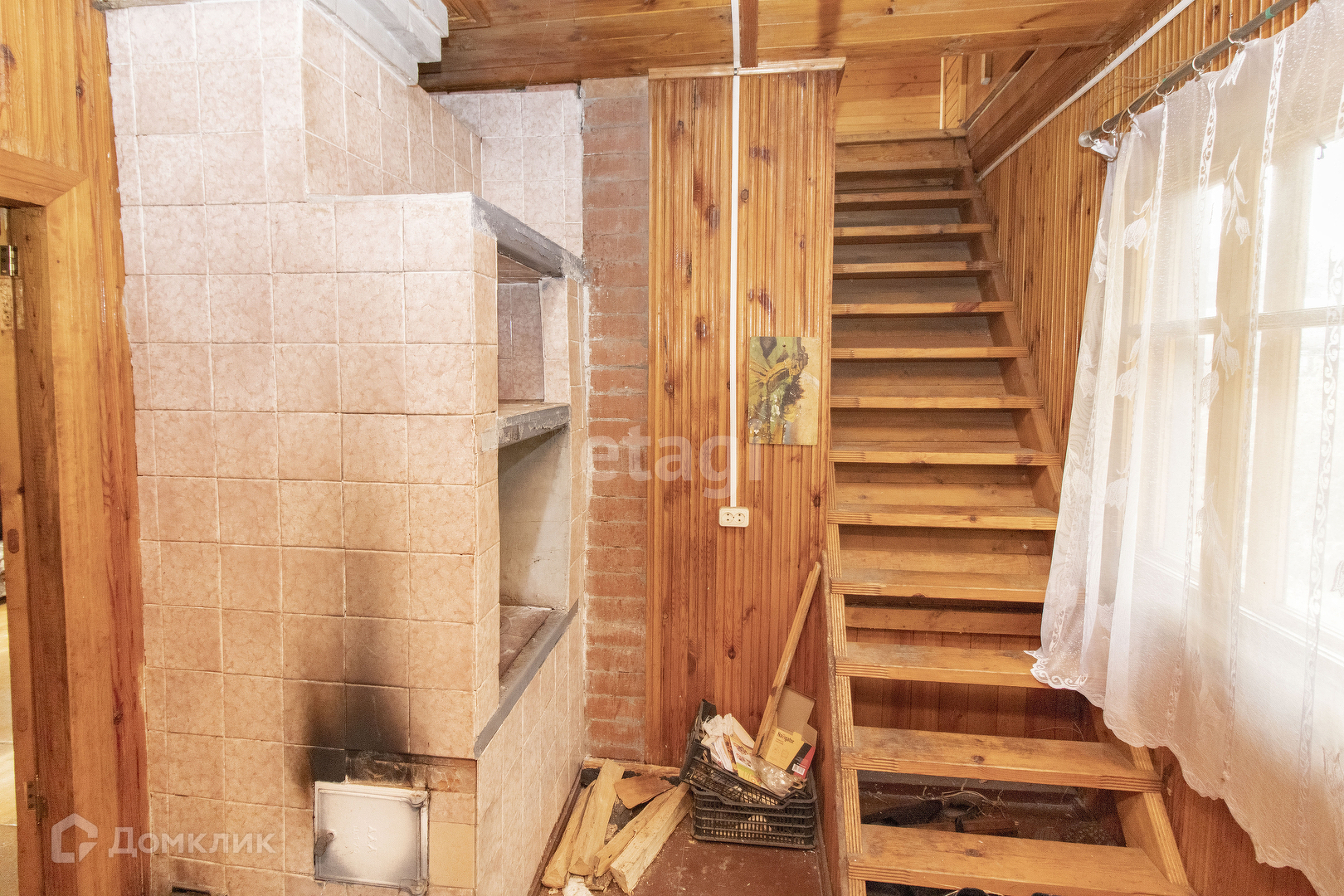 Внутренняя отделка дома: стены, пол и потолок обшиты деревом. Установлены хорошие деревянные межкомнатные двери. Удобная лестница на второй этаж. На первом этаже просторная терраса с кухней и две комнаты. На втором этаже одна просторная комната. В доме печное отопление. Подъезд к участку полностью асфальтирован. Электричество заведено в дом. Также на участке имеются насаждения.