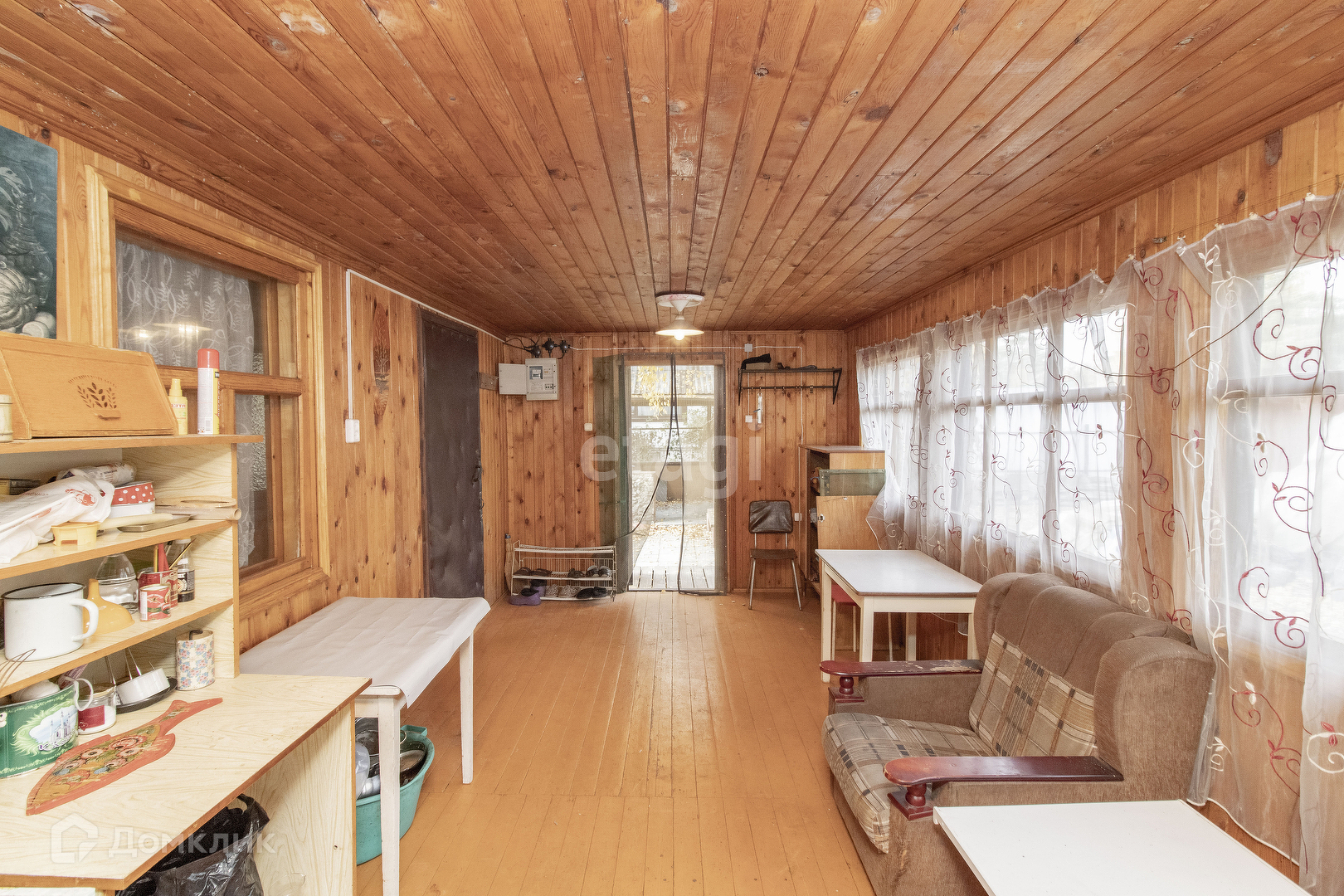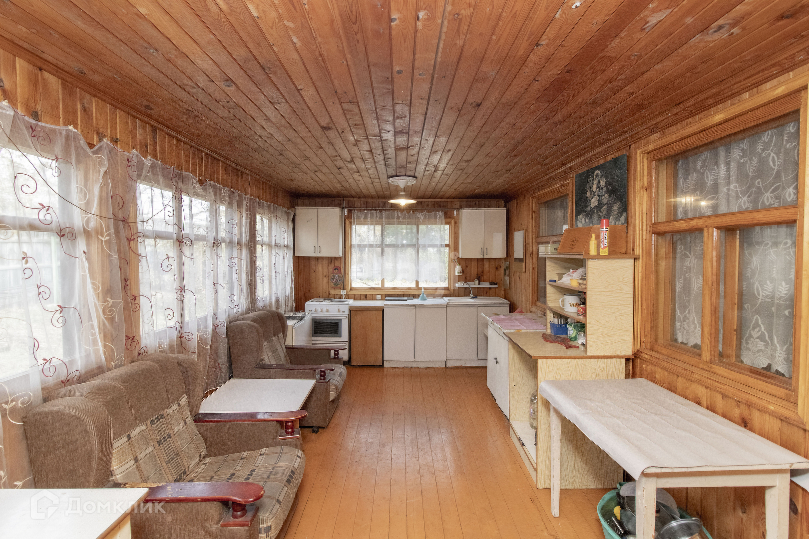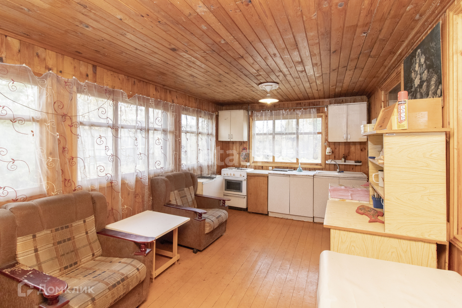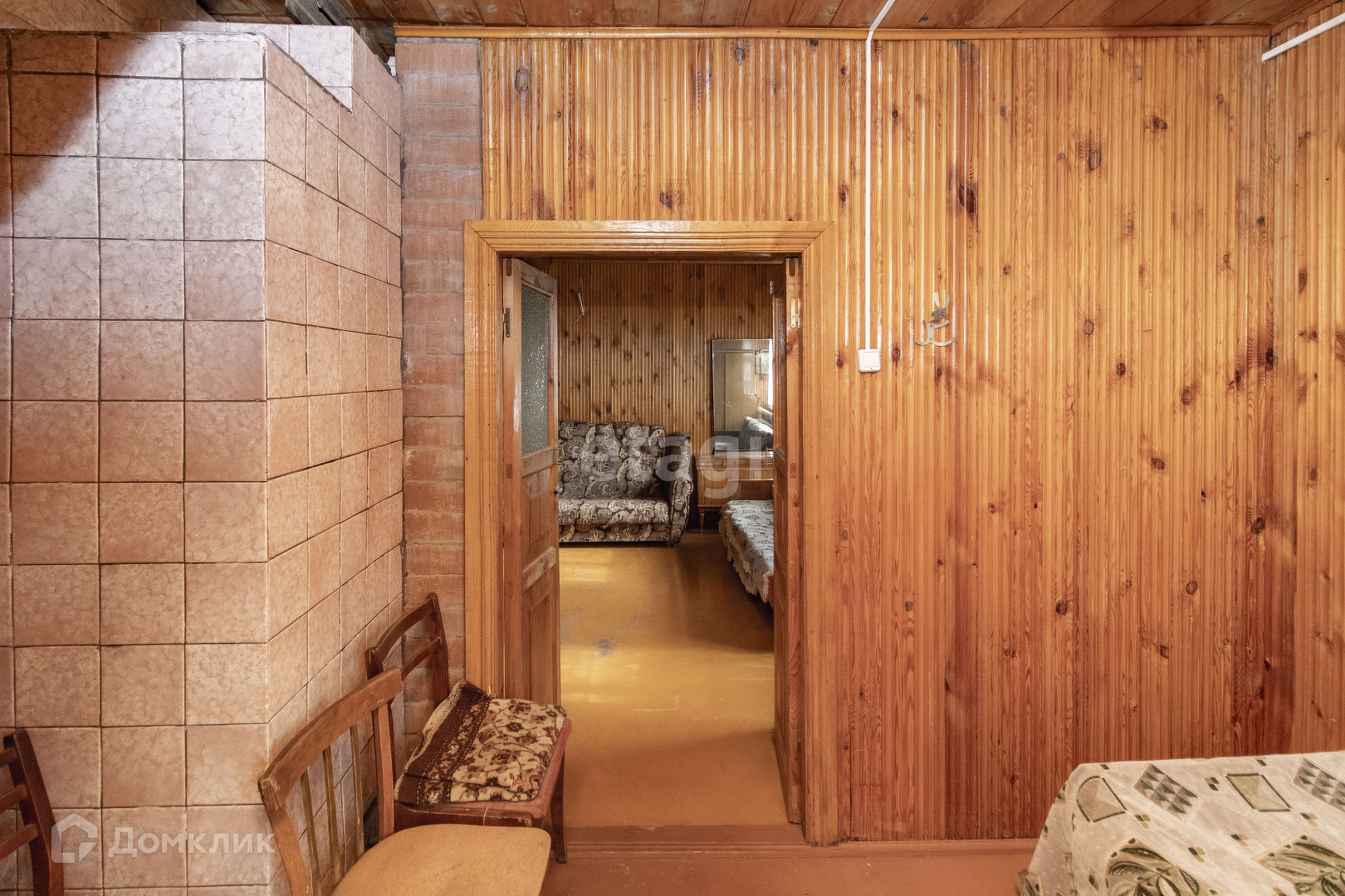 Внутренняя отделка дома: стены, пол и потолок обшиты деревом. Установлены хорошие деревянные межкомнатные двери. Удобная лестница на второй этаж. На первом этаже просторная терраса с кухней и две комнаты. На втором этаже одна просторная комната. В доме печное отопление. Подъезд к участку полностью асфальтирован. Электричество заведено в дом. Также на участке имеются насаждения.