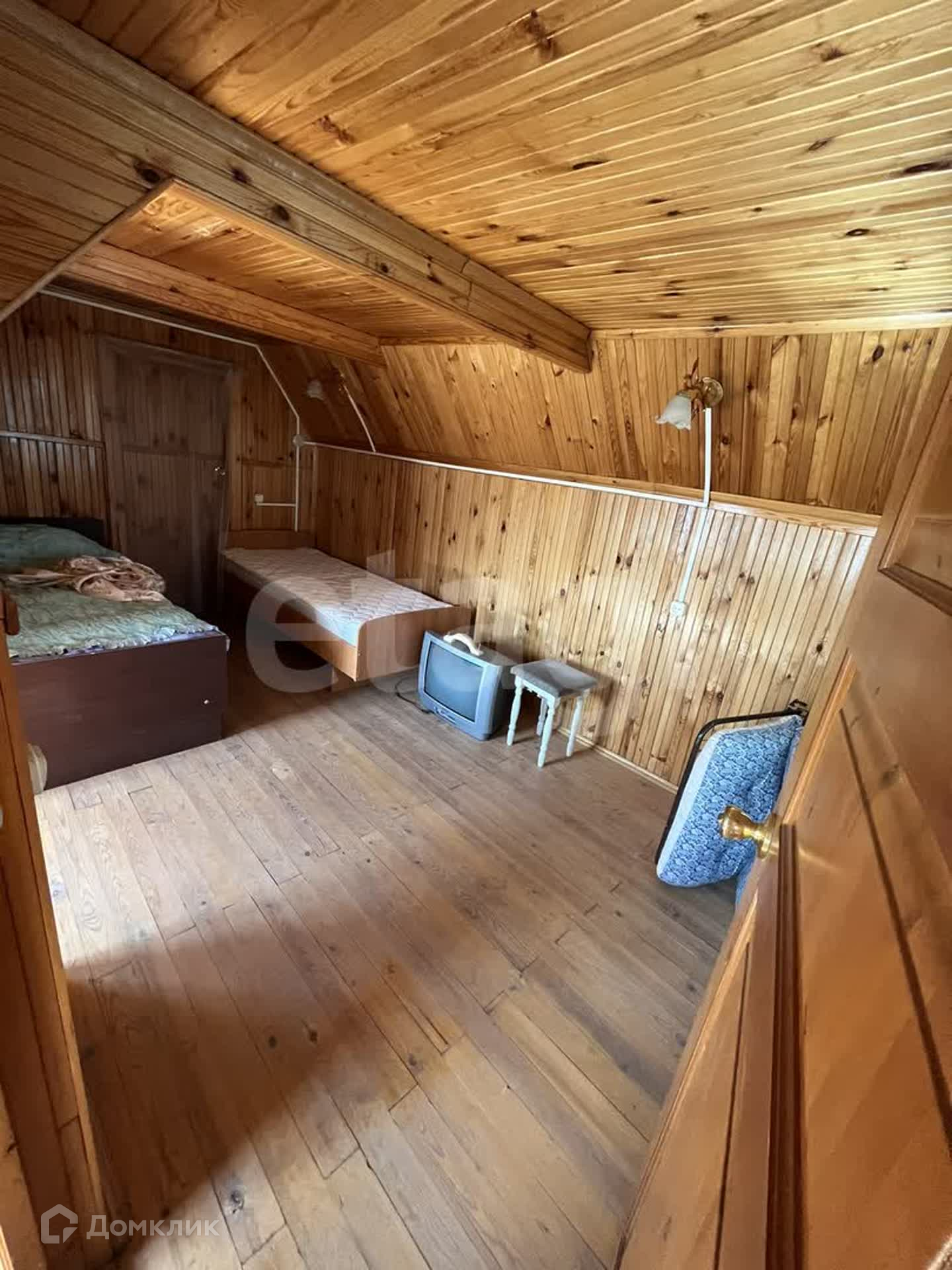 На втором участке основной дом жилой. Кухня-гостинная с буржуйкой. Спальня с печкой. В коридоре холодильник. Второй этаж общит вагонкой, есть выход на крышу. В доме частично необходим небольшой ремонт пола и отштукатурить печку. На участке машиноместо, две яблони, две груши, вишня, теплица, баня.
