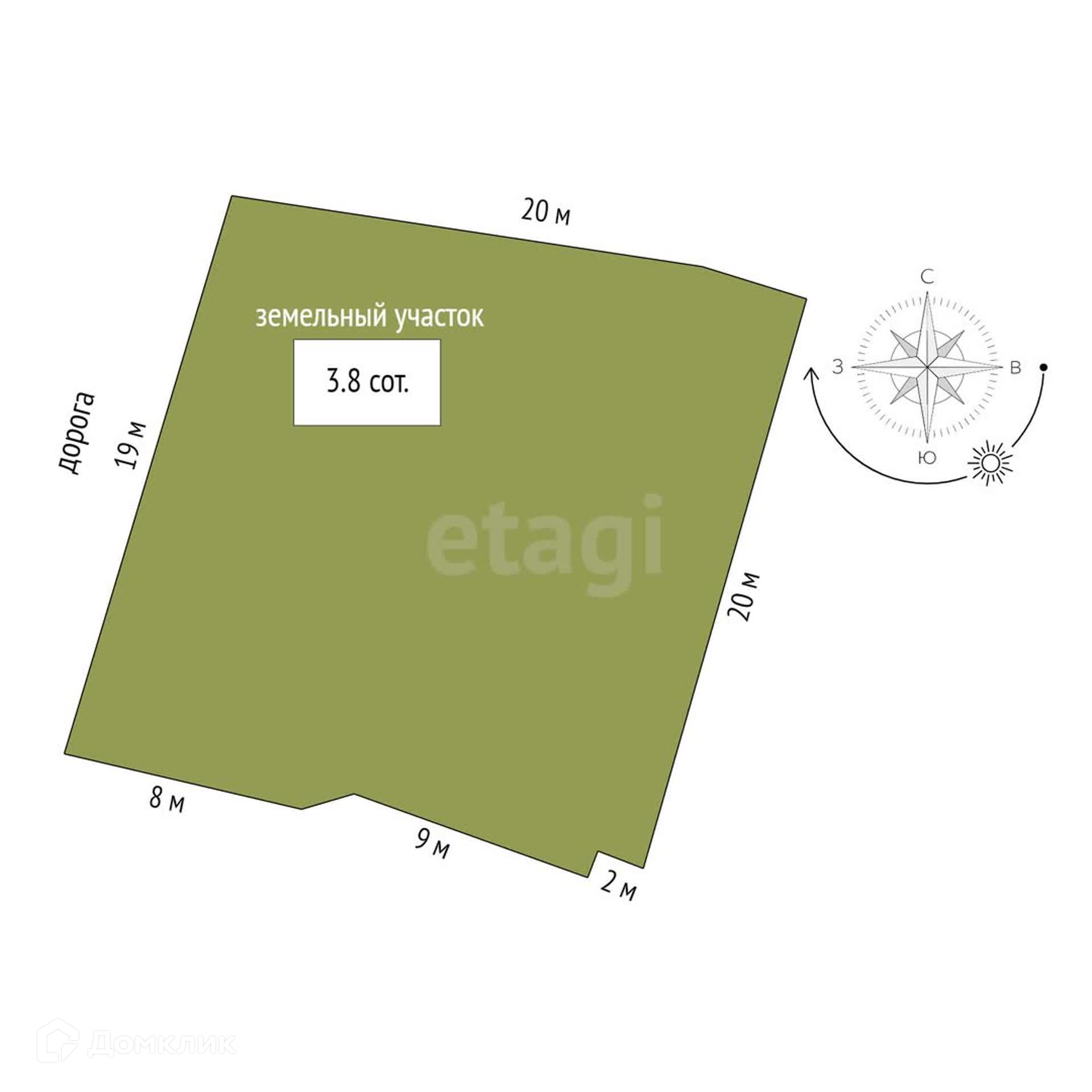 Площадь участка 3.8 сот.