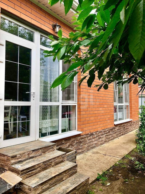 Выполнена облицовка цоколя и ступенек.