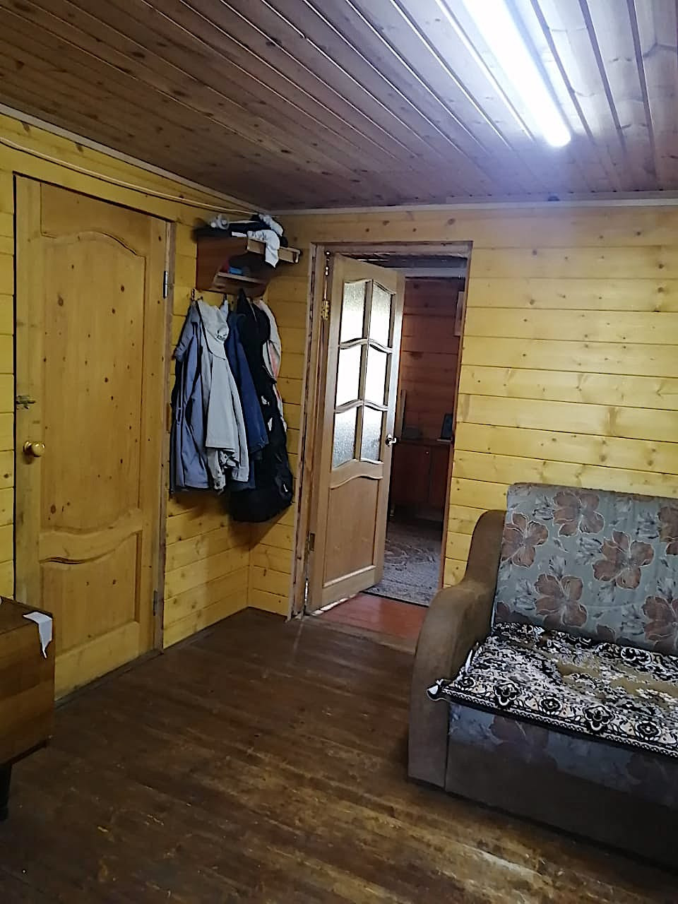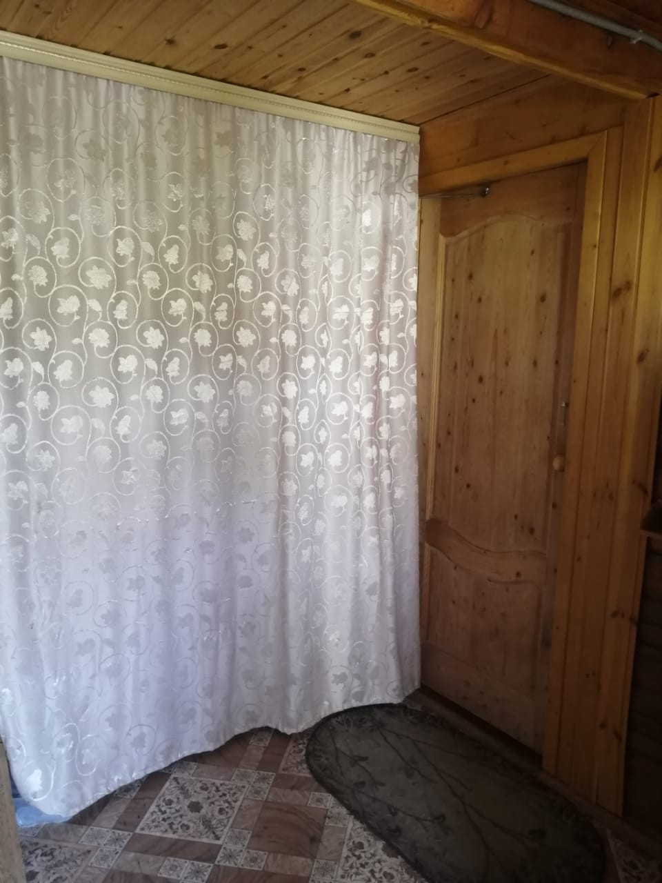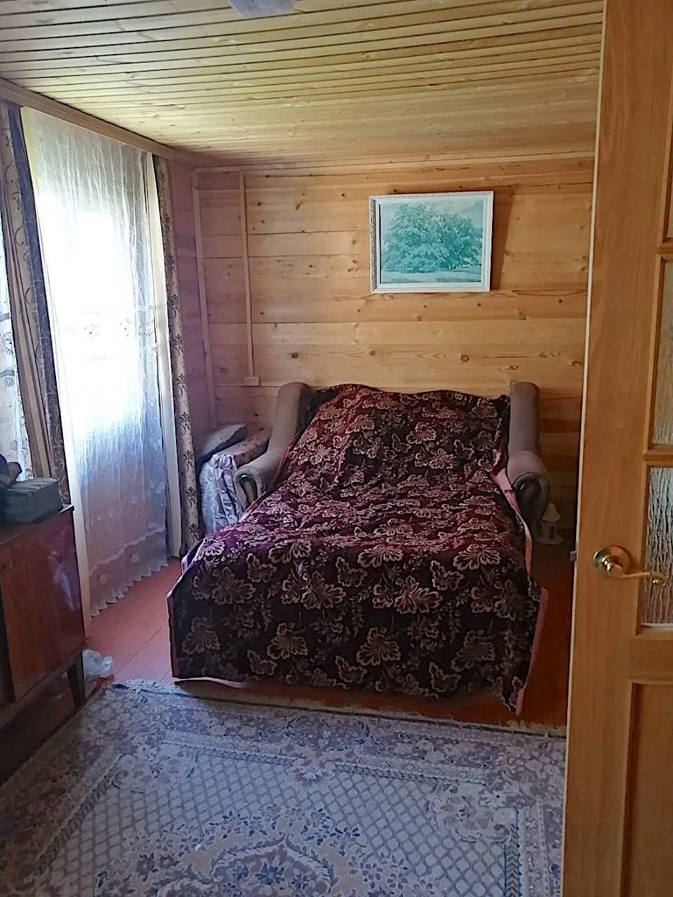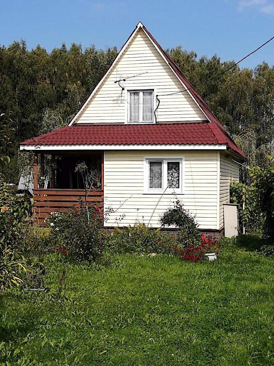 Дом 2-х этажный, размер первого этажа 6м х 8м, второй этаж 25м, материал дома – брус (100), фундамент - свайный, кровля – ондулин. Вода – колодец (22 кольца), свет 15 кВт.