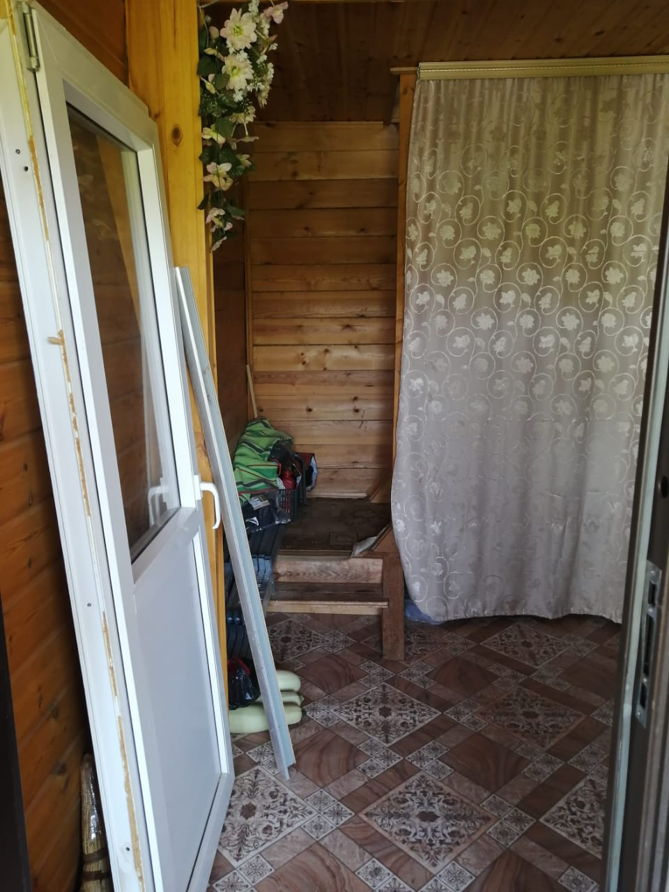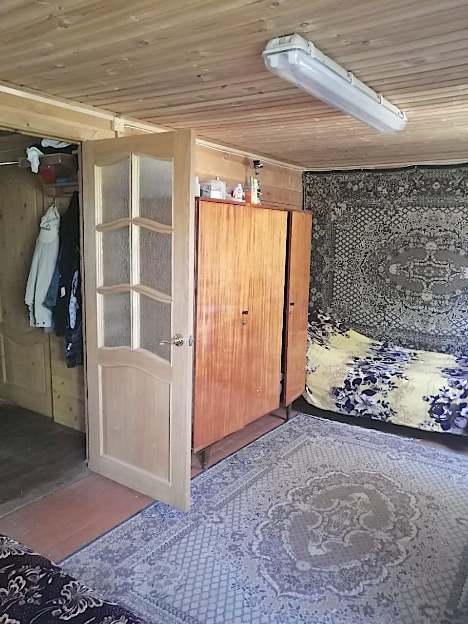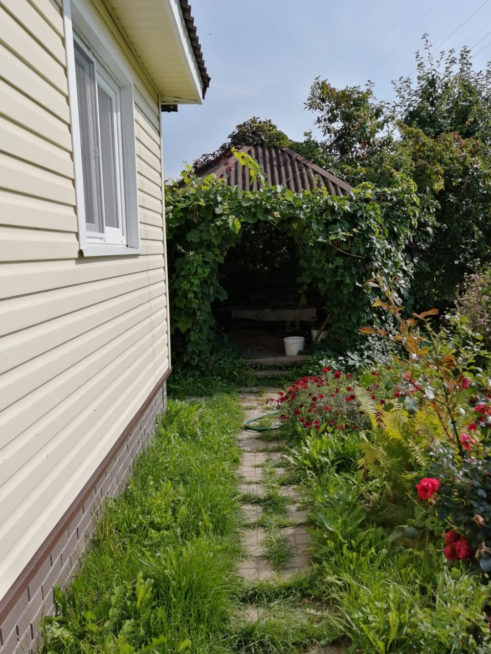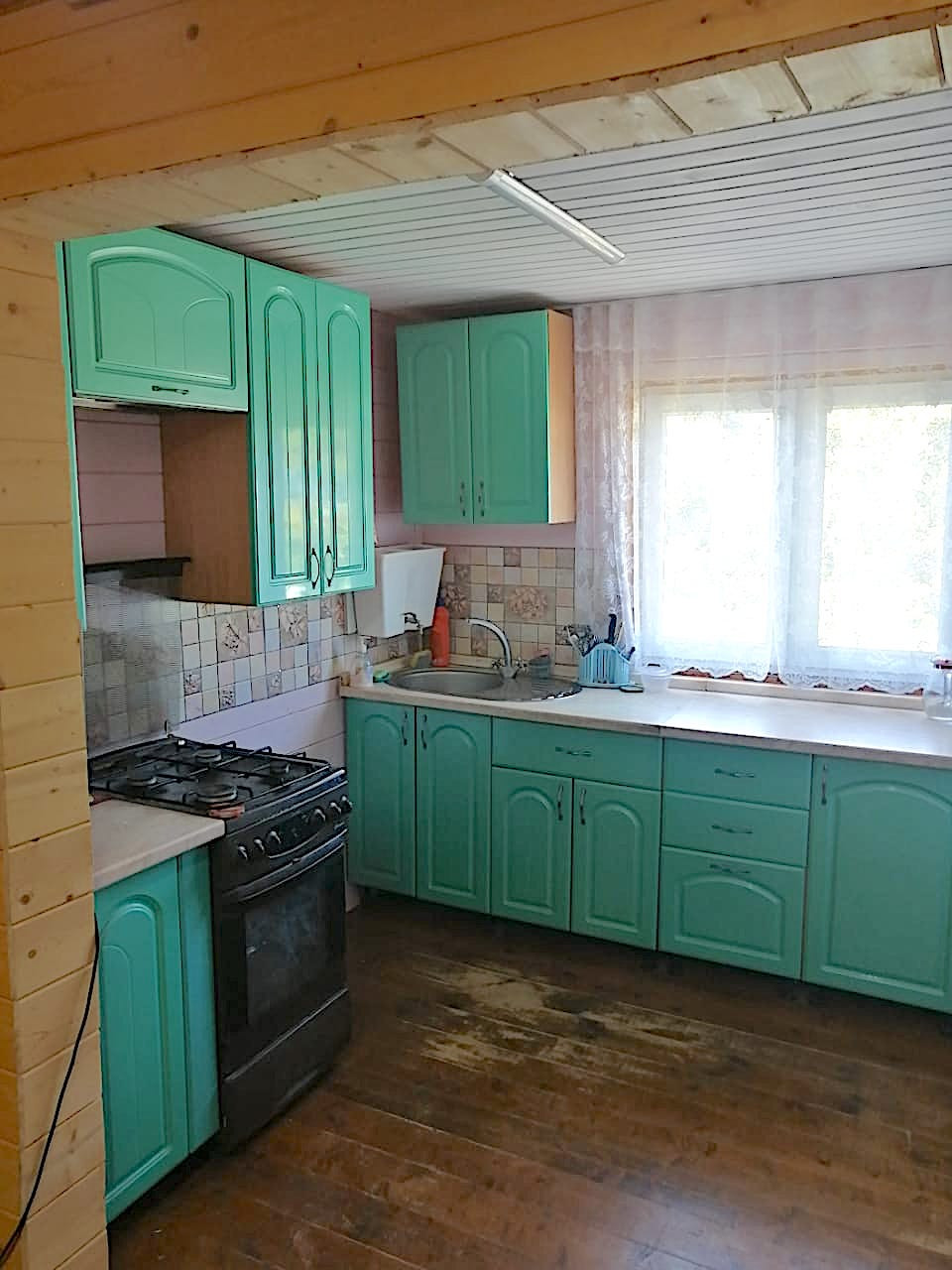 Дом 2-х этажный, размер первого этажа 6м х 8м, второй этаж 25м, материал дома – брус (100), фундамент - свайный, кровля – ондулин. Вода – колодец (22 кольца), свет 15 кВт.