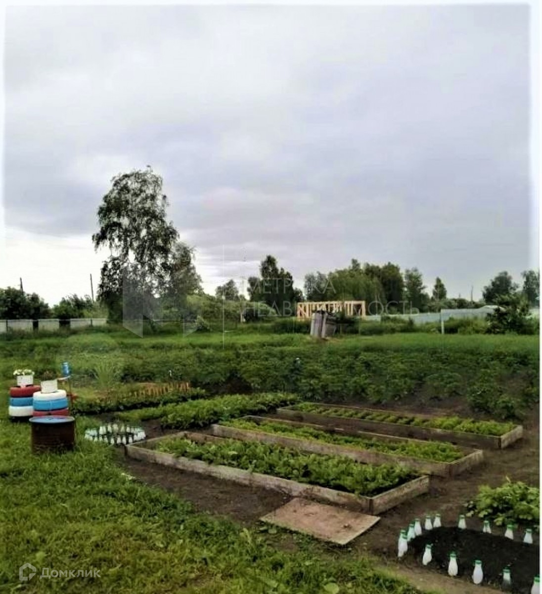 Участок разработан, удобрен, ухожен, каждый год дает прекрасные урожаи овощей. Плодоносят все насаждения: малина, крыжовник, красная и черная смородина, жимолость, барбарис, яблони трех сортов, вишня, красная черемуха и слива. Хороший урожай ягод вам обеспечен!