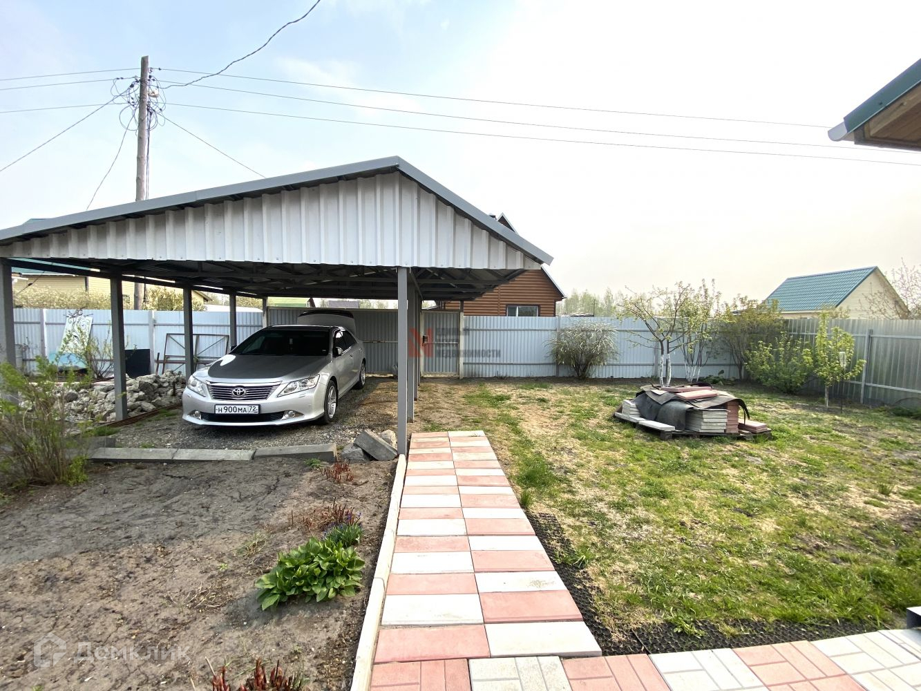 По участку выложены  дорожки из брусчатки , 2 теплицы, два железных контейнера.