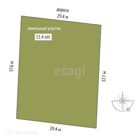 Площадь участка 11.4 сот.