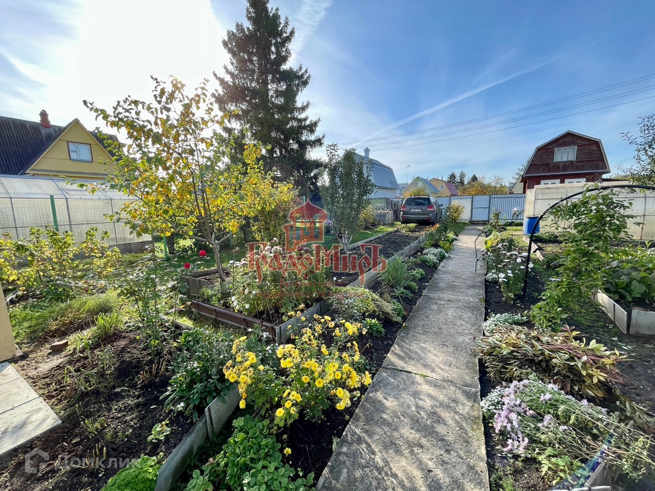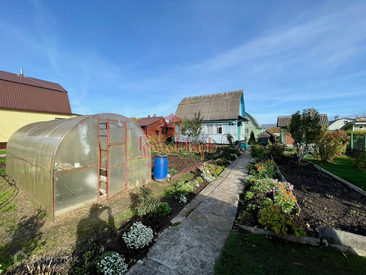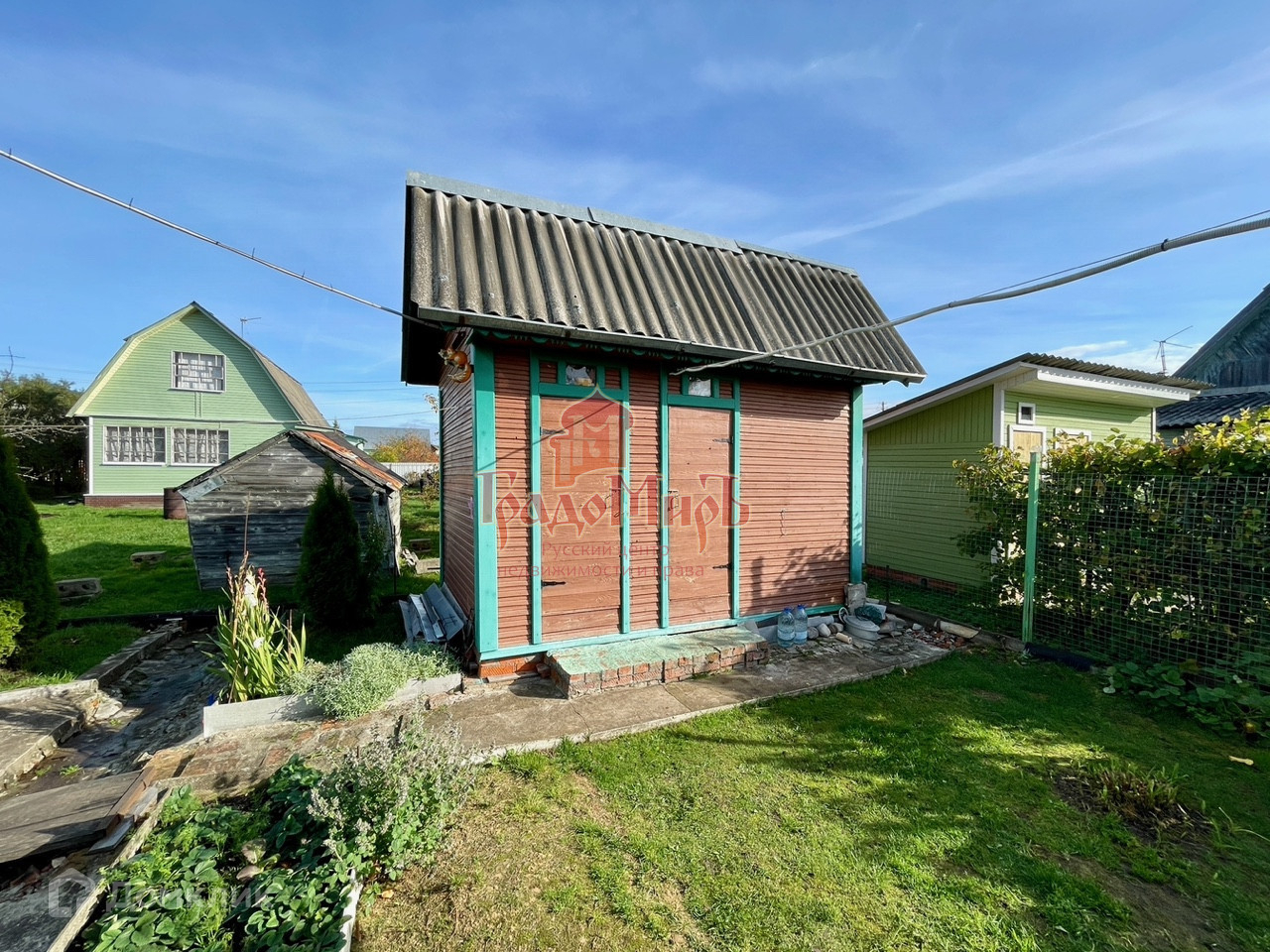 Дом каркасный, утеплён, подходит для нахождения зимой. Участок ухоженный, ровный, правильной прямоугольной формы.На котором расположены: теплица, мастерская, бытовка с душевой комнатой, парковочное место,  грядки, плодоносные кустарники. Участок частично огорожен забором из проф листа.