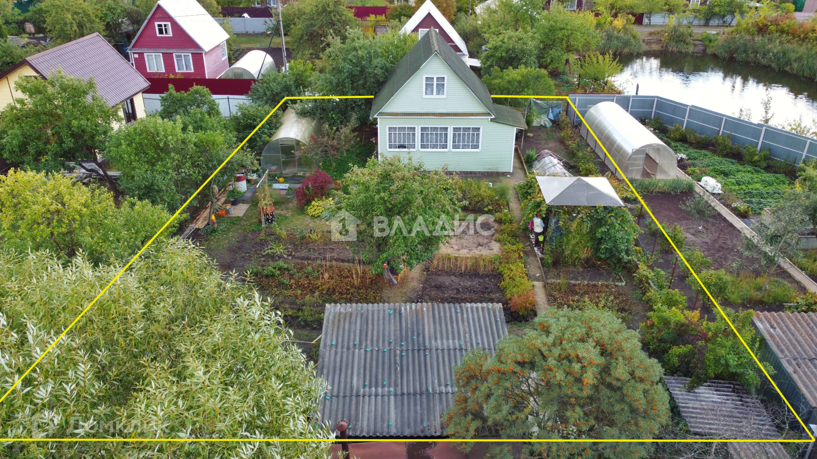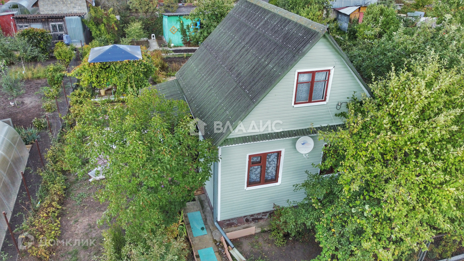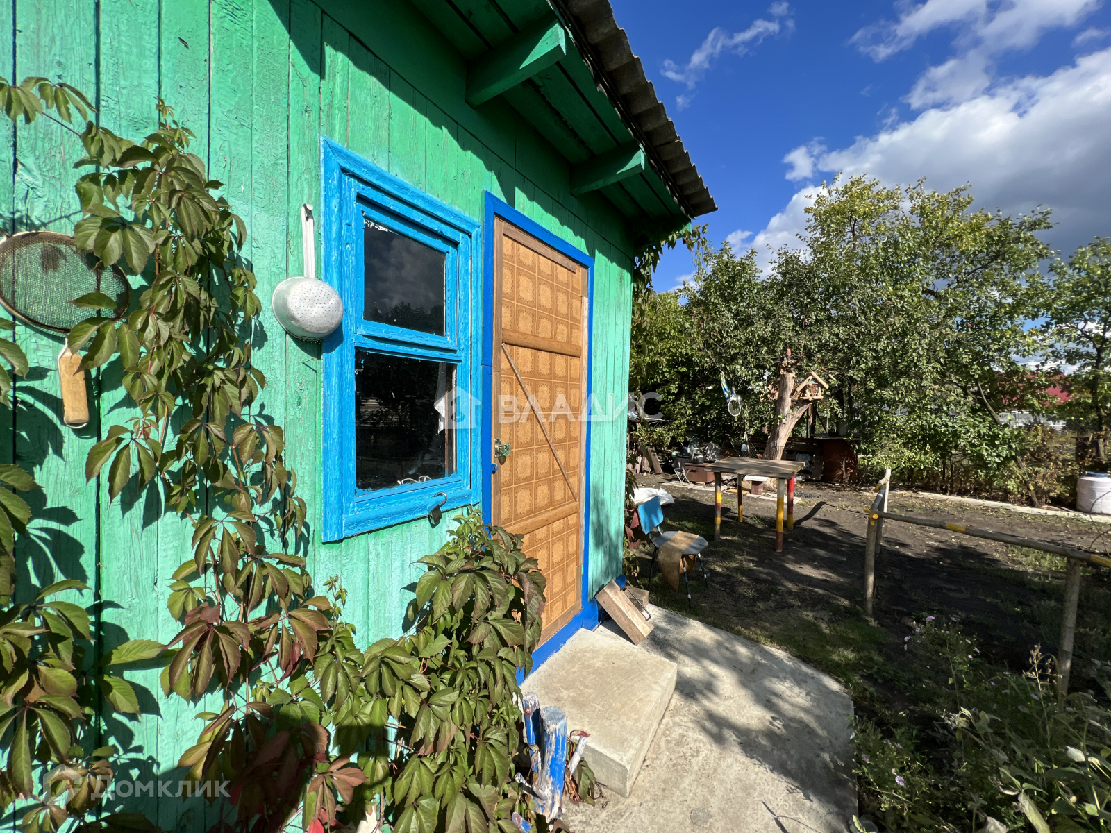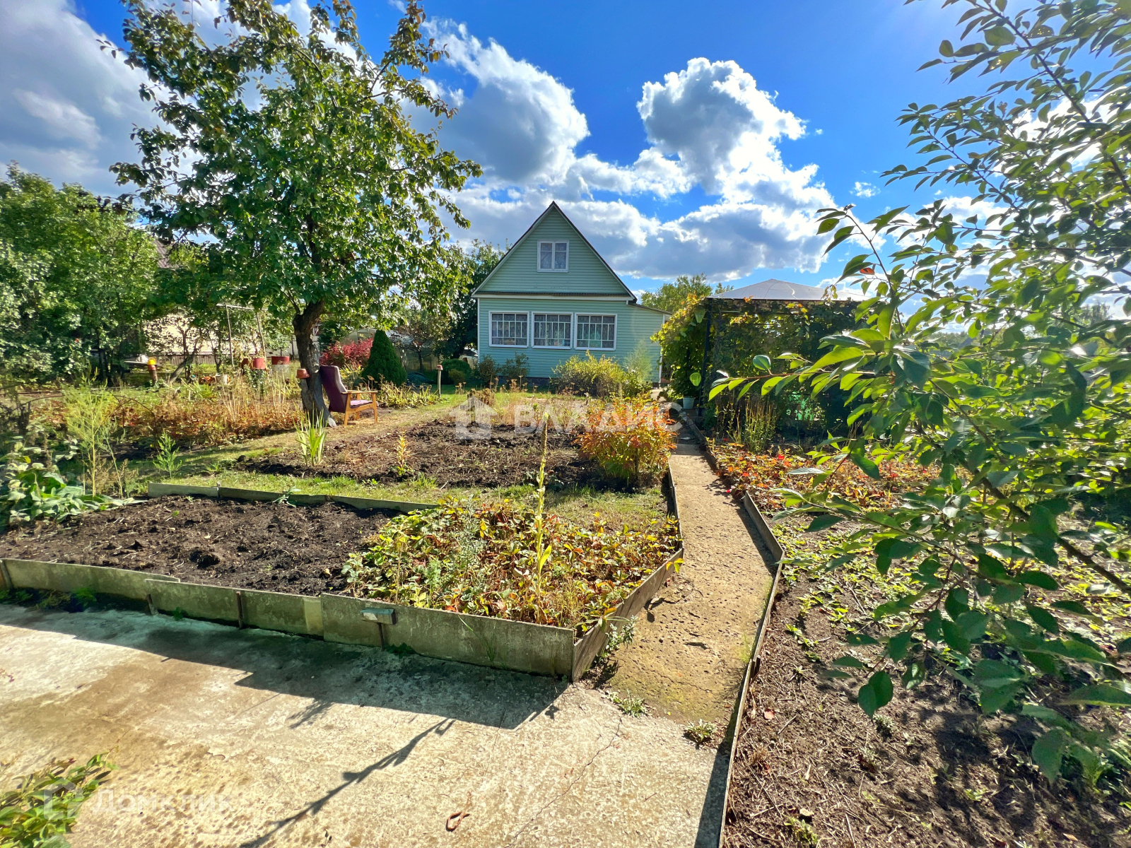 На участке растут плодовые деревья груша, яблоня, вишни, клубника, малина, смородина красная и черная, крыжовник, виноград, цветы.