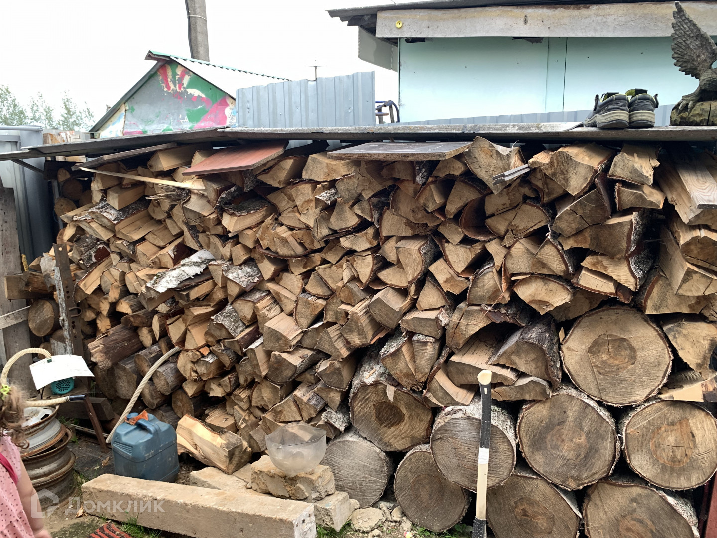 На участке туалет,душ,теплица, беседка, бассейн,колодец и мангальная зона. две дровницы которые заполнены дровами.