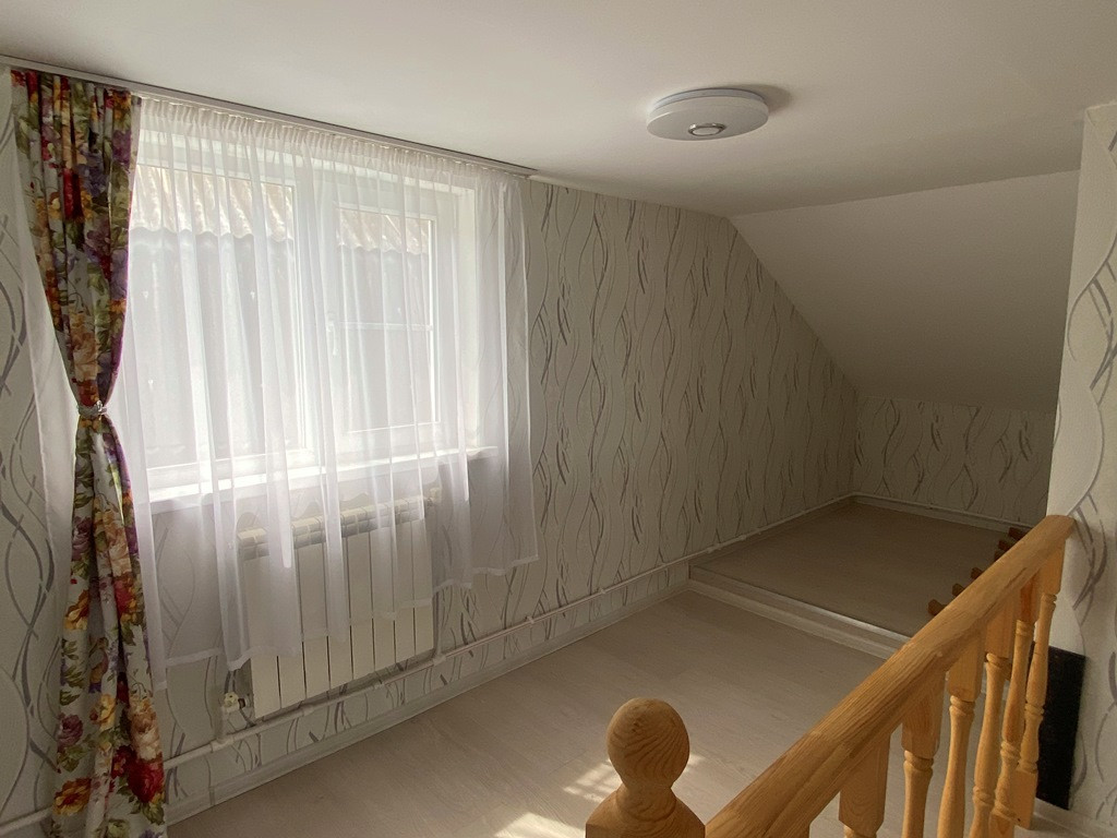 Общая площадь 109,3 кв.м. Планировка. 1 этаж: прихожая, котельная, просторная кухня, проходная комната, спальня, совмещенный санузел, кладовка. По удобной лестнице попадаем на 2 этаж. Тут одна большая комната, которую можно разделить на 2 комнаты + гардеробная.