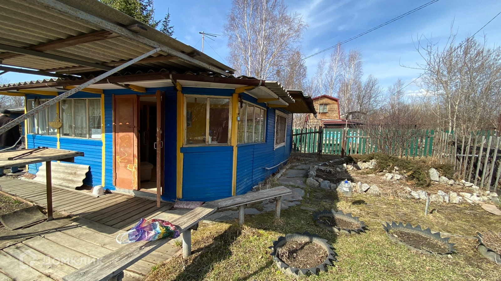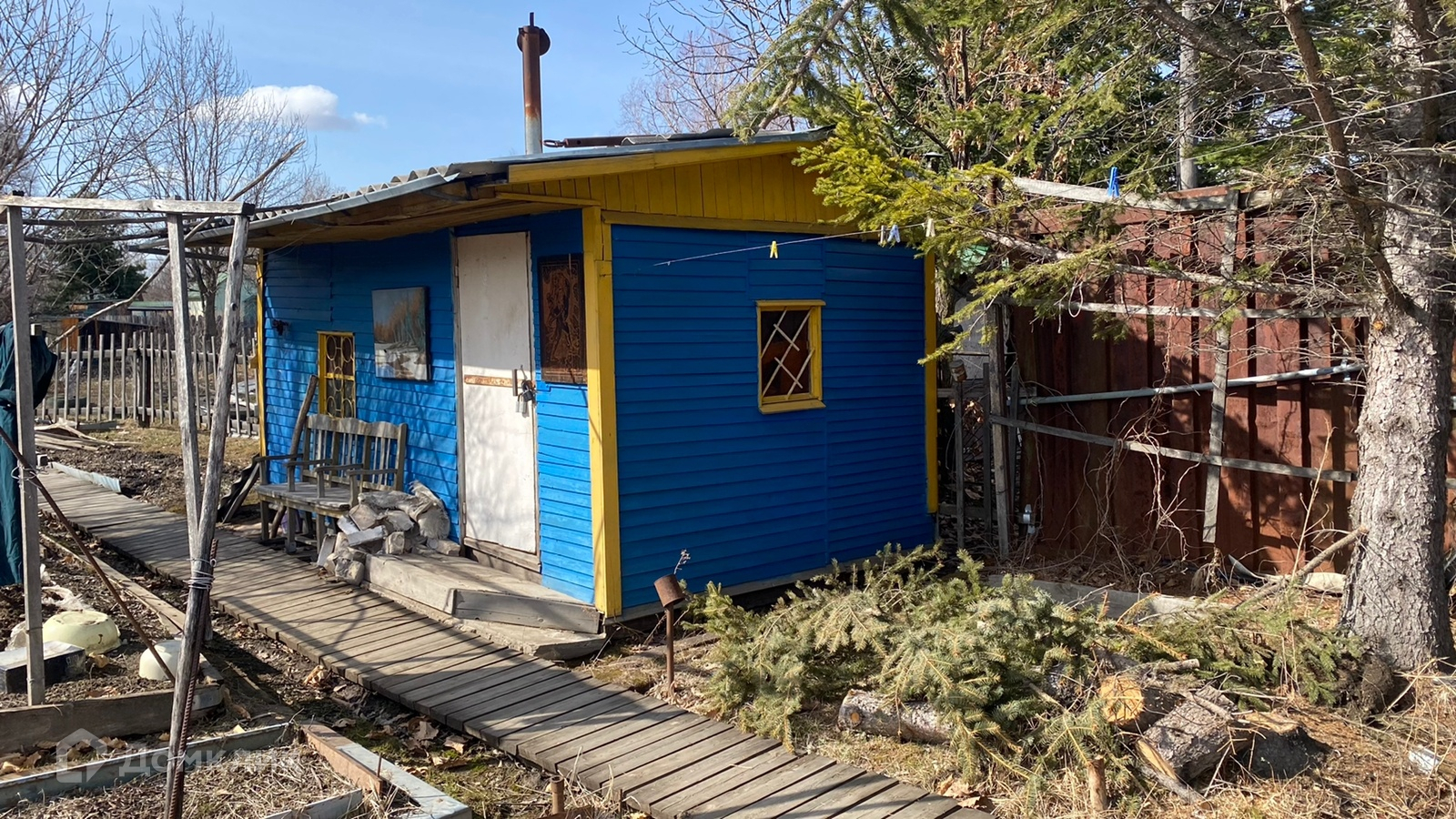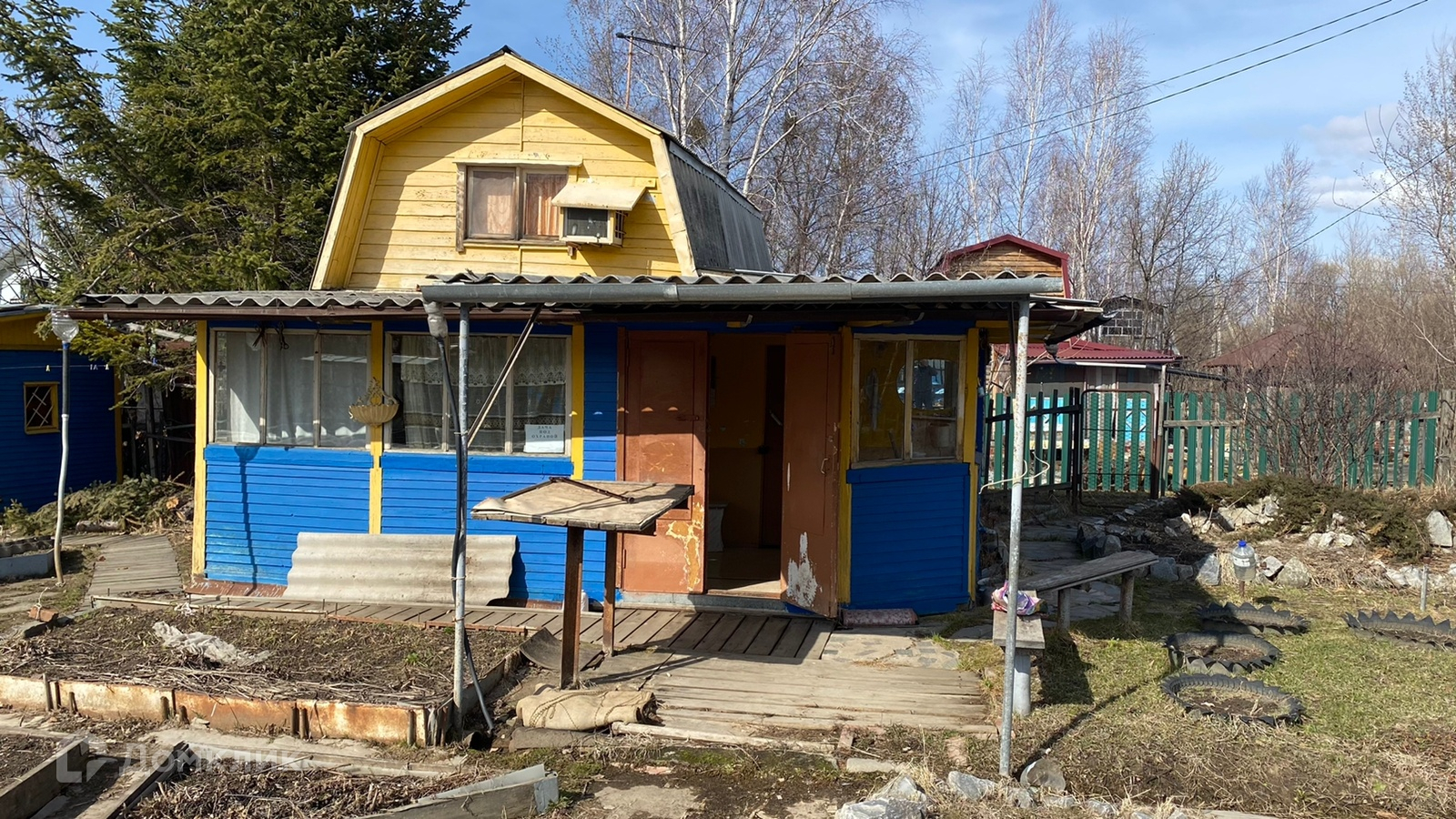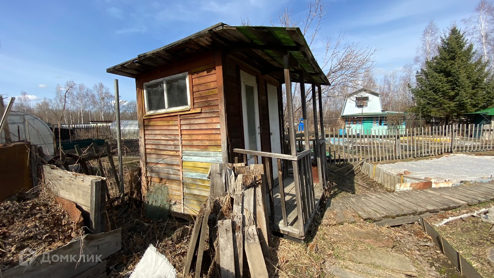 На участке также есть постройки типо дровника, кладовая и БАНЬКА на дровах.