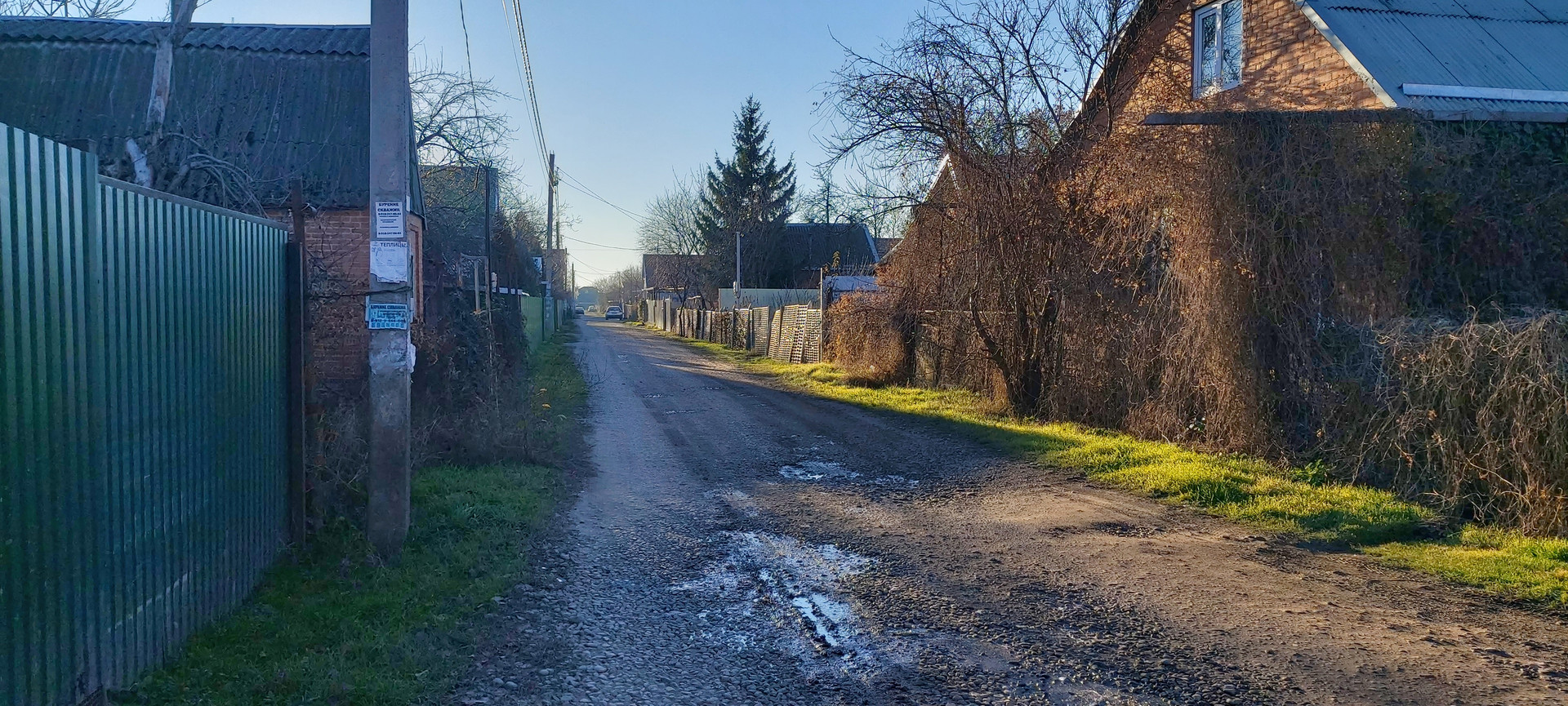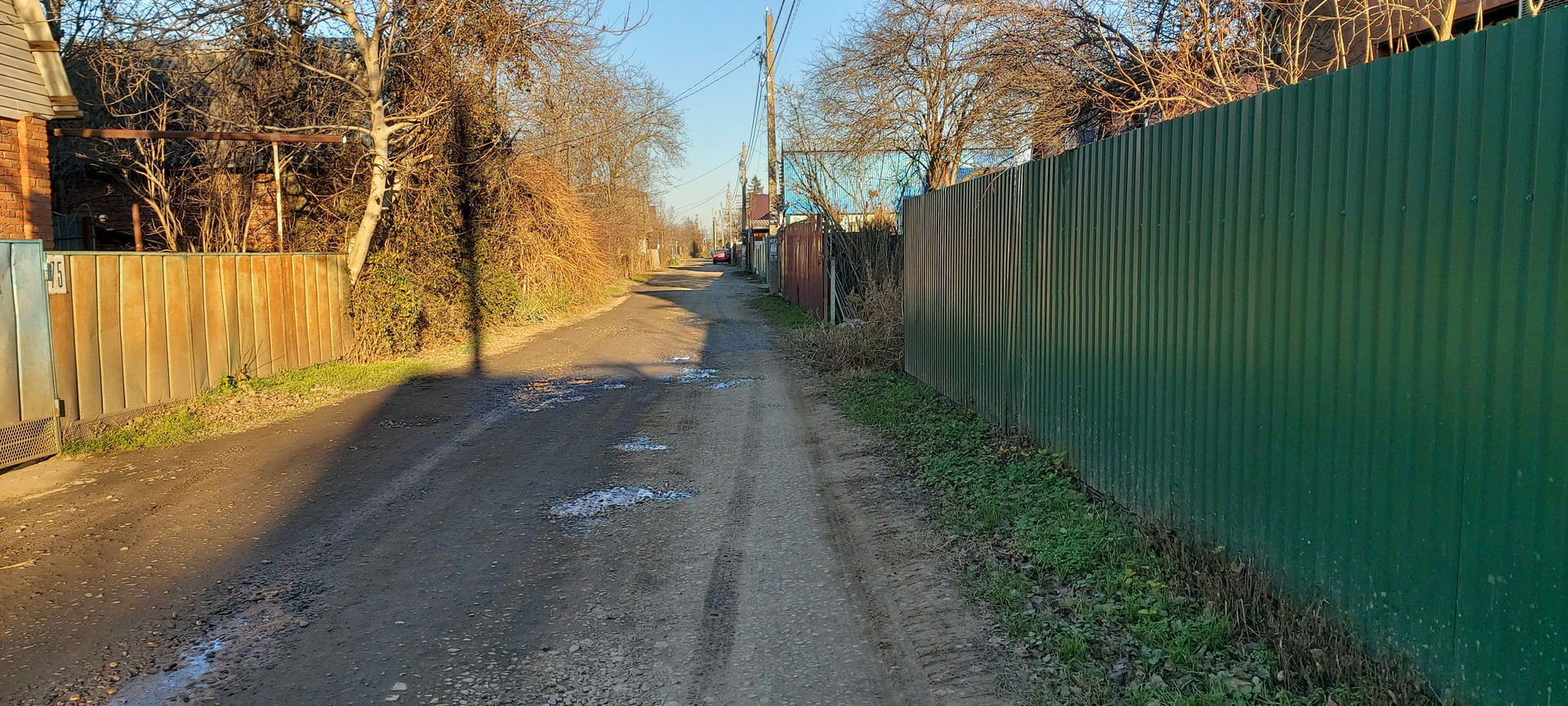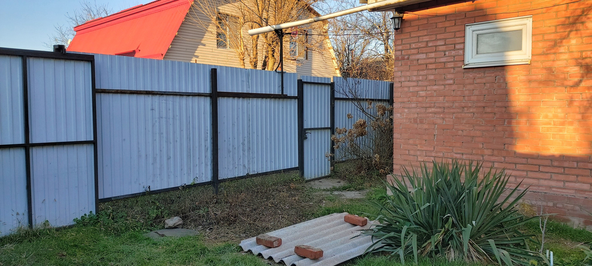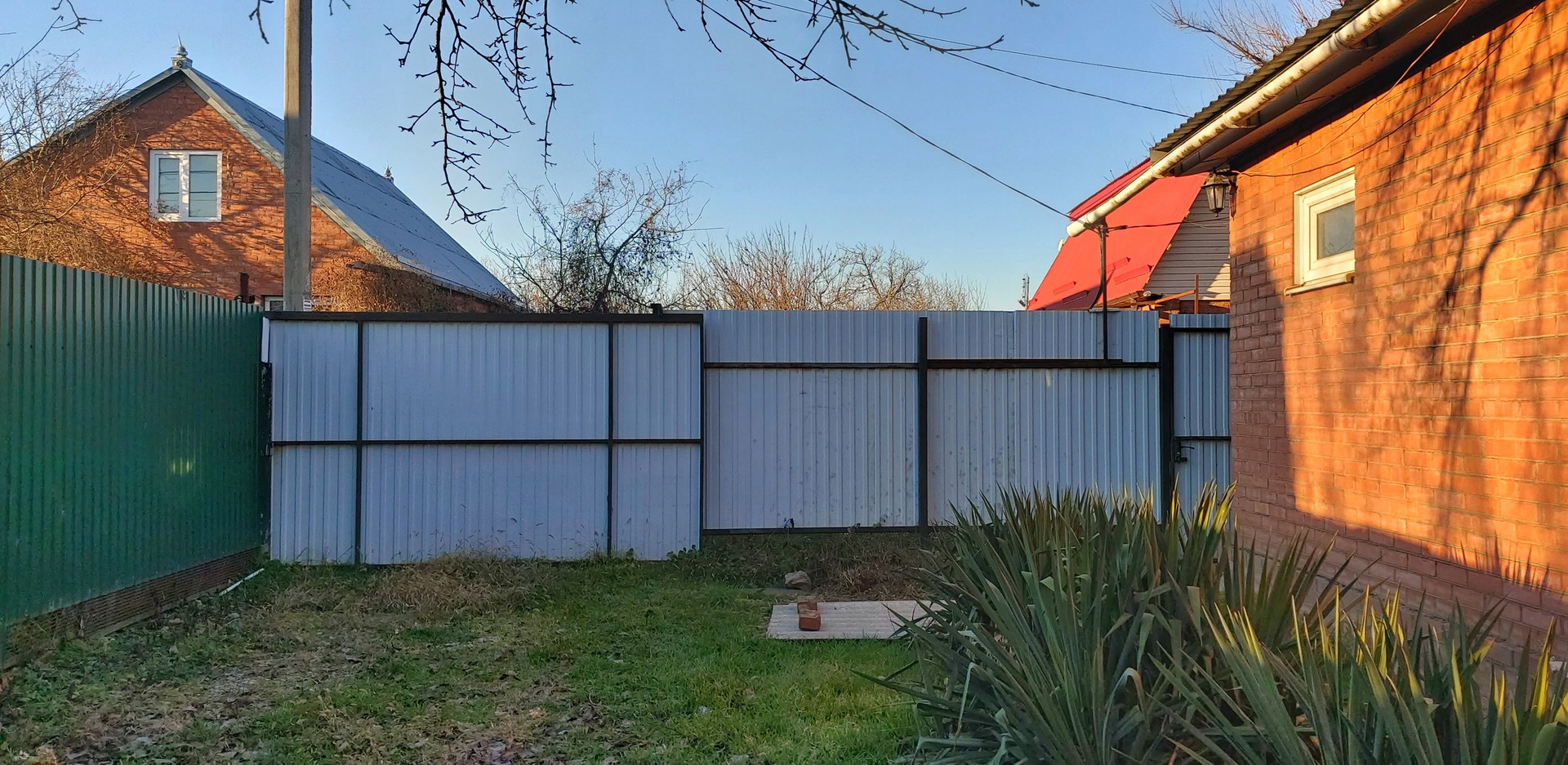 ️Фасад участка из металлопрофиля с откатными воротами. Есть место для машины.