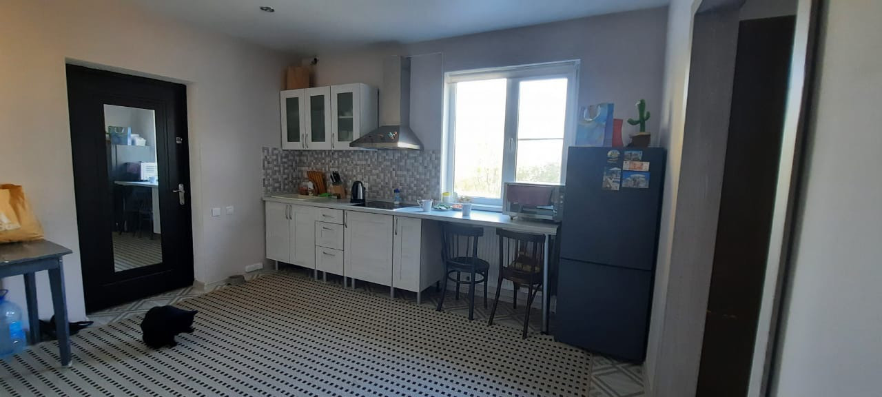 Продаётся большой 2-х этажный дом в центре посёлка Дружелюбный на участке земли 6 соток. В доме выполнен качественный ремонт , 2 спальни на втором этаже и гостиная на первом. Большая кухня с выходом на веранду. Сан узел облицован   испанской плиткой. Дом тёплый и уютный.