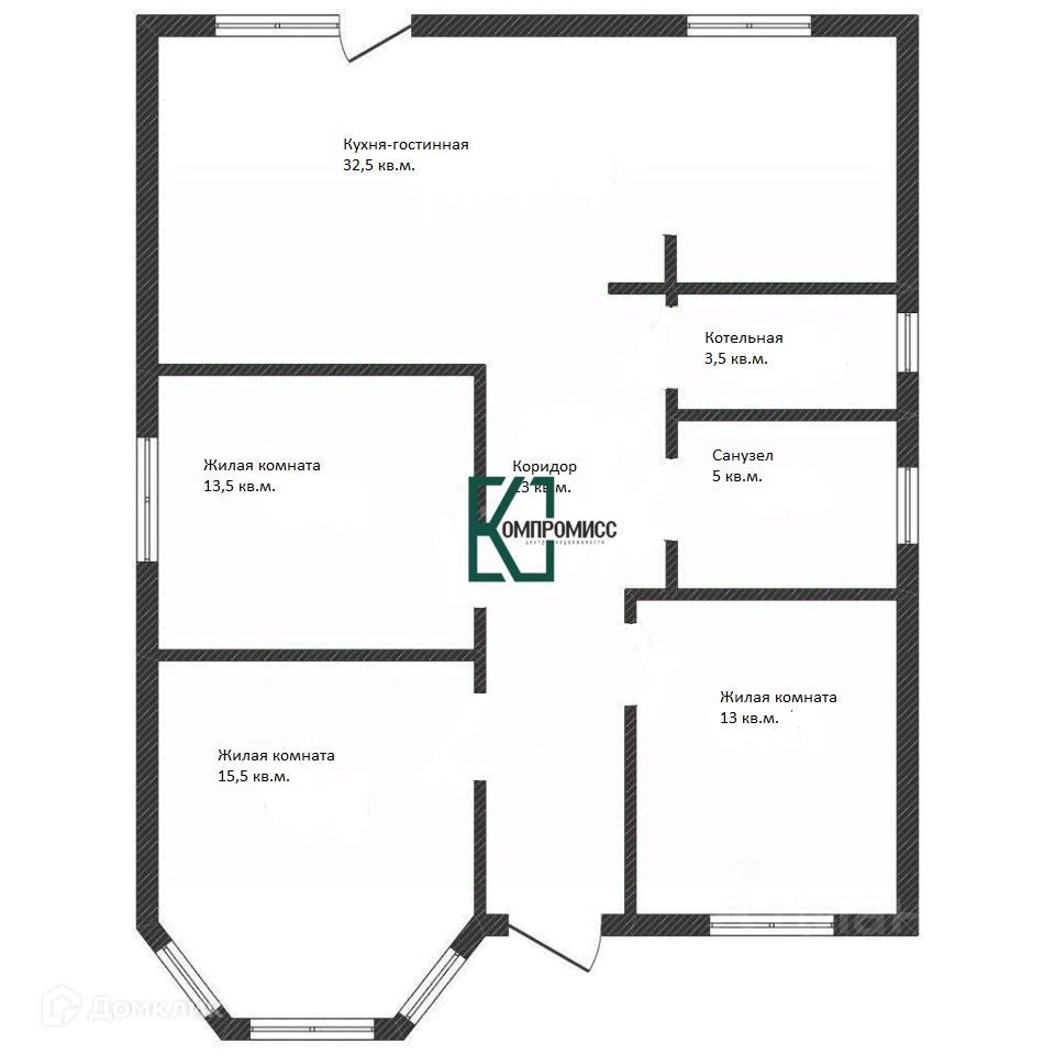 Согласно планировки в доме: 3 жилых изолированных комнаты, кухня-гостиная с выходом во двор, совмещенный санузел, отдельное помещение для котельной.