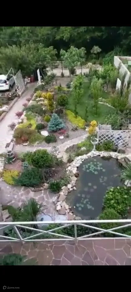 -вечнозеленый живописный двор с прудом плодовыми деревьями