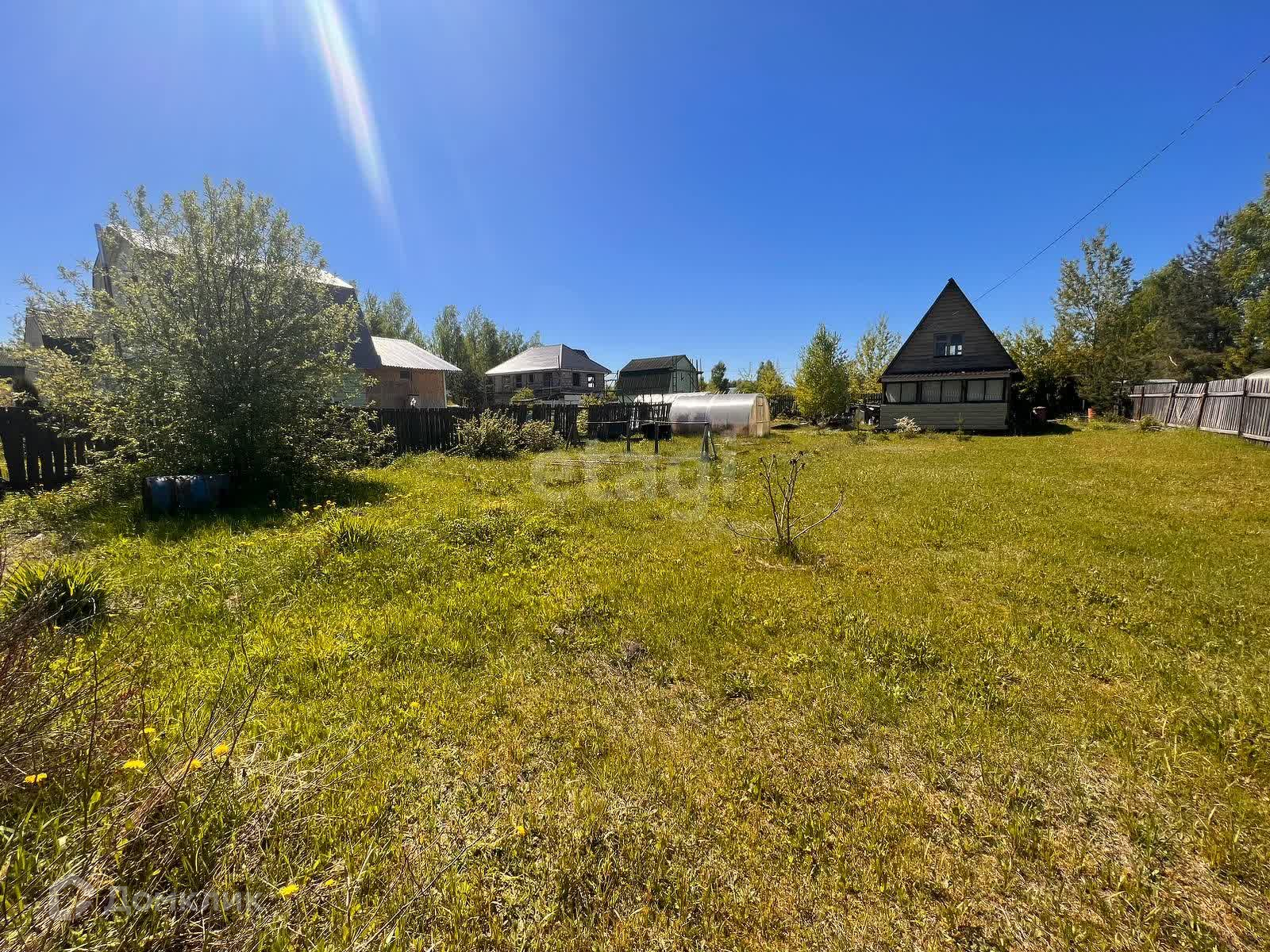 Земля на участке обработанная, плодородная, место солнечное, есть ягодные и декоративные кустарники, есть теплица. Специально выделяли большое ровное пространство с травкой, можно поставить бассейн, качели или беседку.