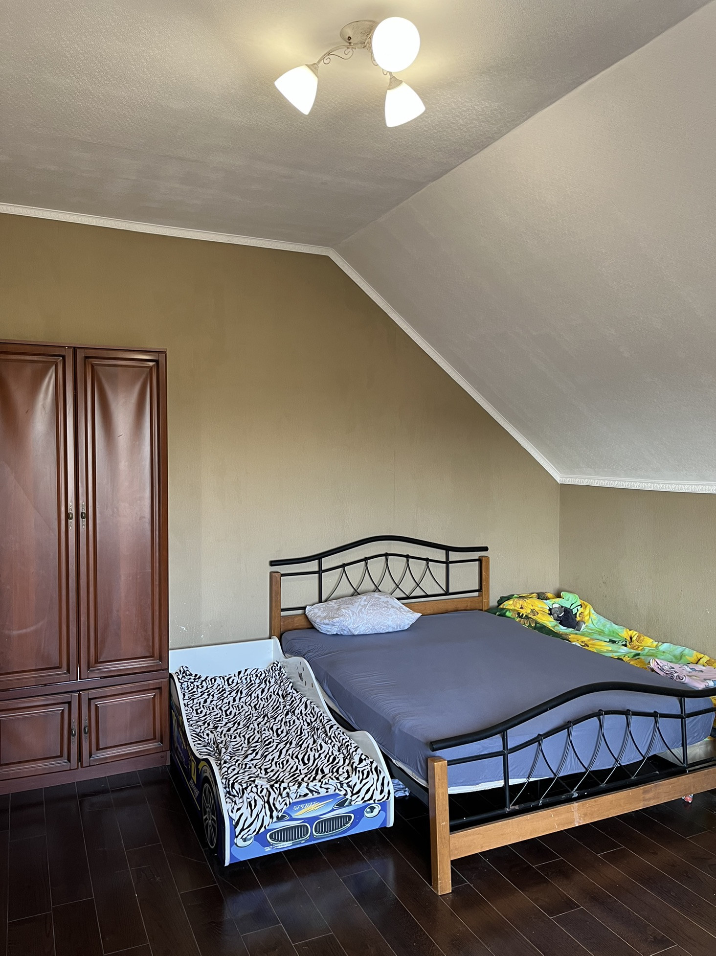 - на 2 этаже расположены: 4 спальные комнаты, ванная комната. Ремонт выполнен частично, но и в этом преимущество Ваше- сделаете все по своему вкусу. Между этажами металлическая капитальная лестница. Двери и окна МПО. Крыша четырёх скатная из мягкой кровельной черепицы. Отопление дизельное и дровяное. На участке высажены плодовые деревья и кустарники.