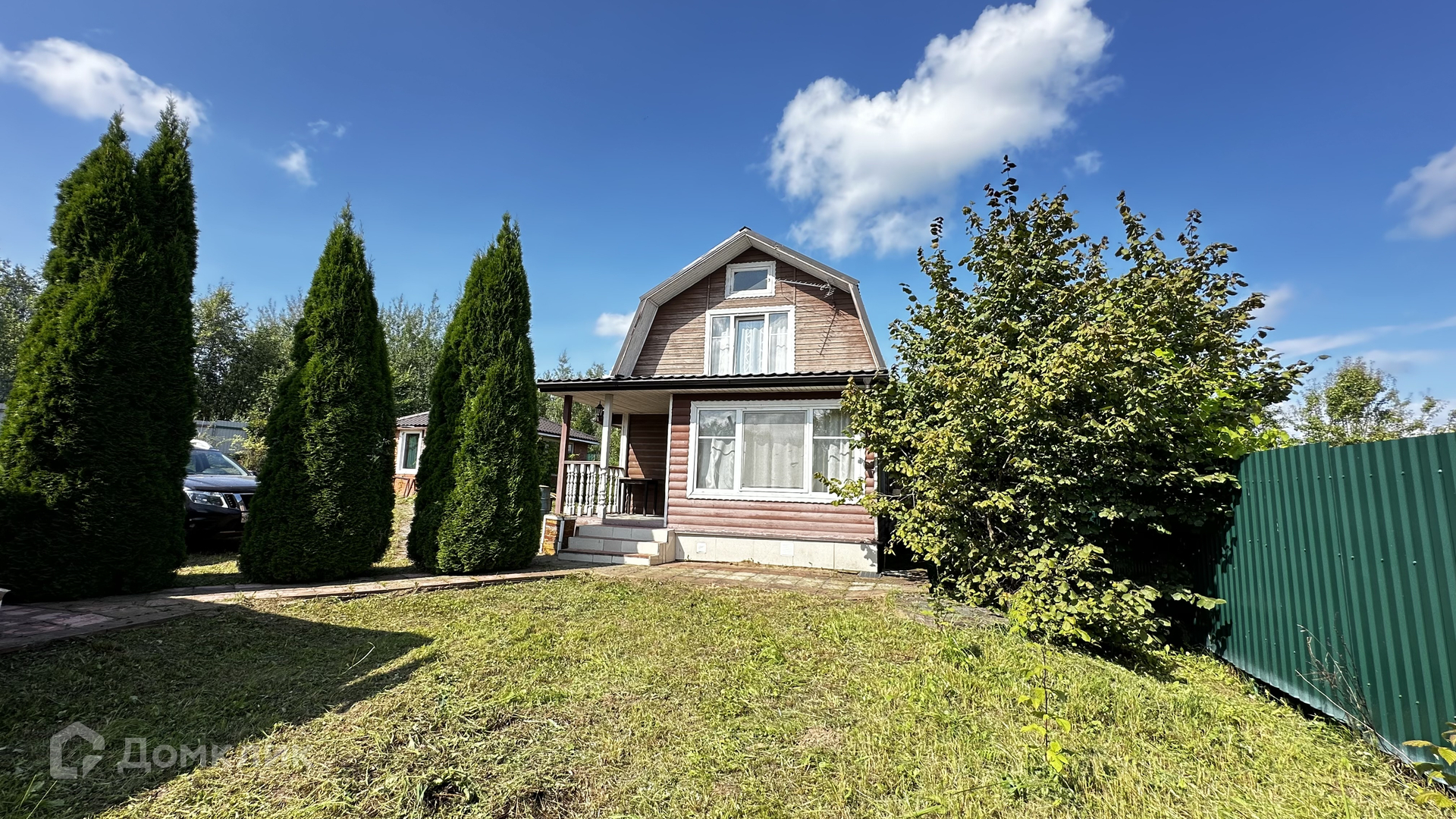 Участок 9,7 соток, ухоженный, сухой, с плодово-ягодными кустами (смородина, крыжовник, виноград) и деревьями (яблоня, слива, груша, орешник), так же есть большие туи, можжевельник и цветы. С трех сторон участок огорожен профлистом и с одной стороны сетка рабица. Сделаны ворота для въезда автомобиля. Участок с межеванием его кадастровый номер: 50:05:0140313:9