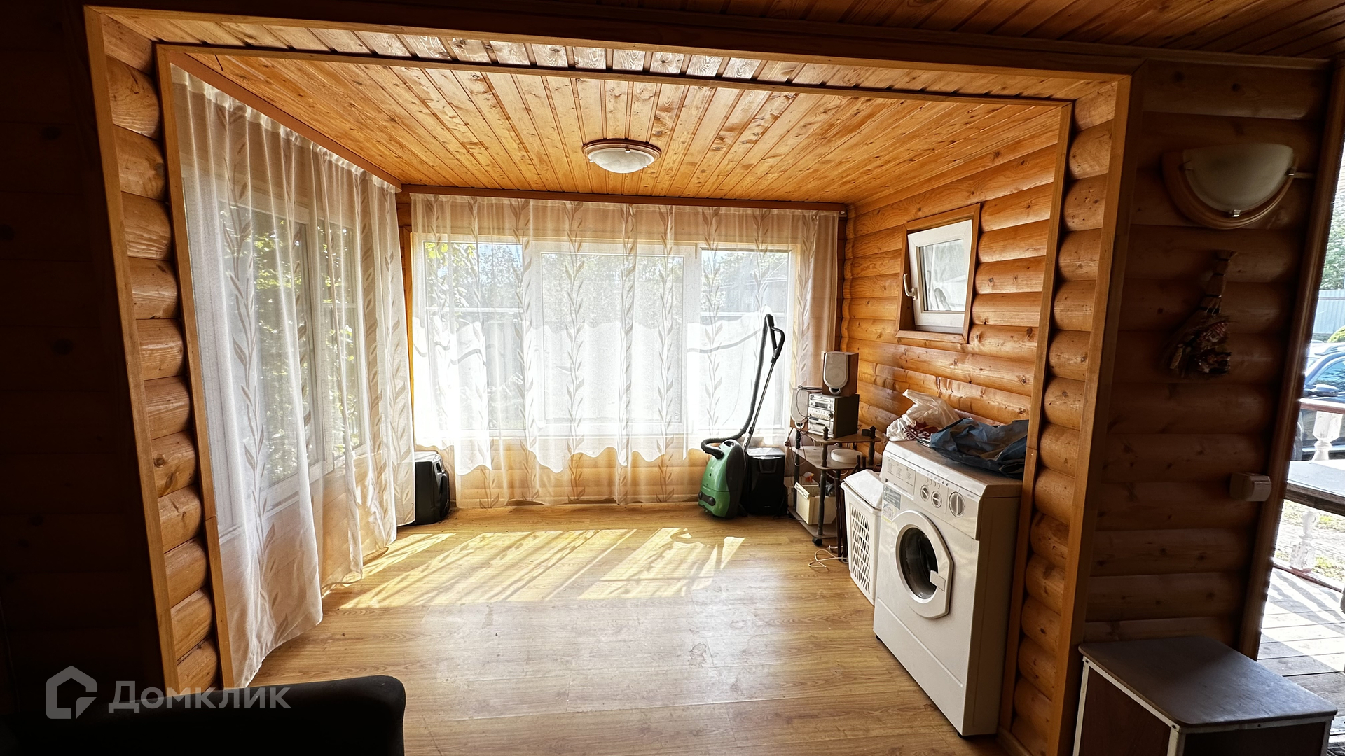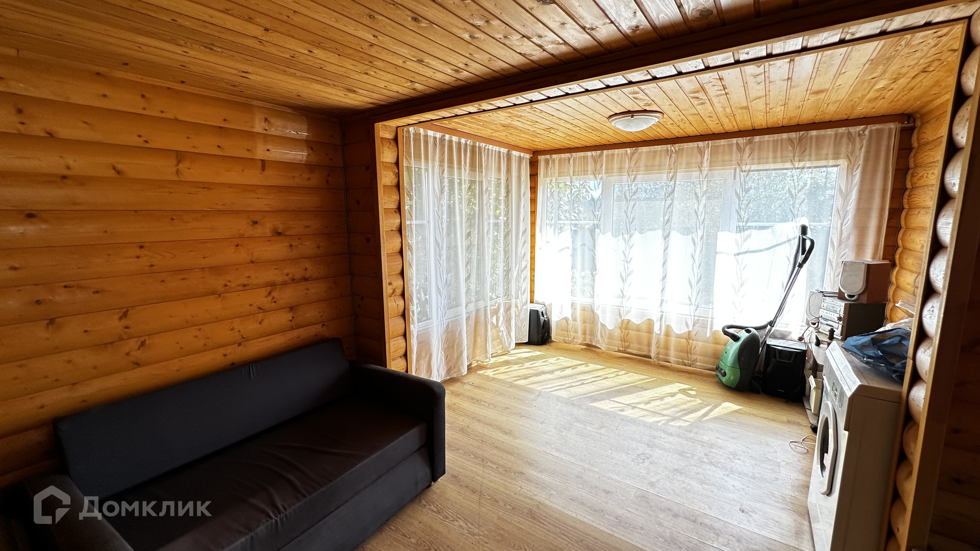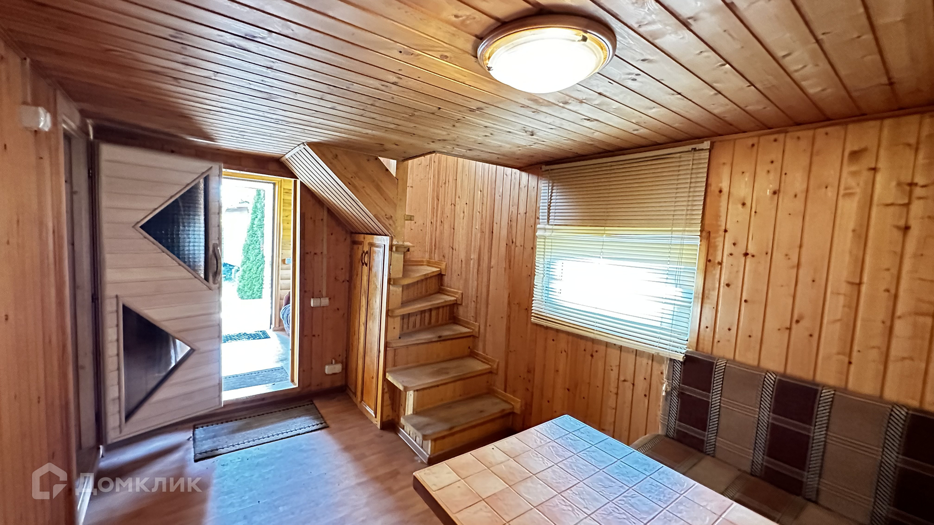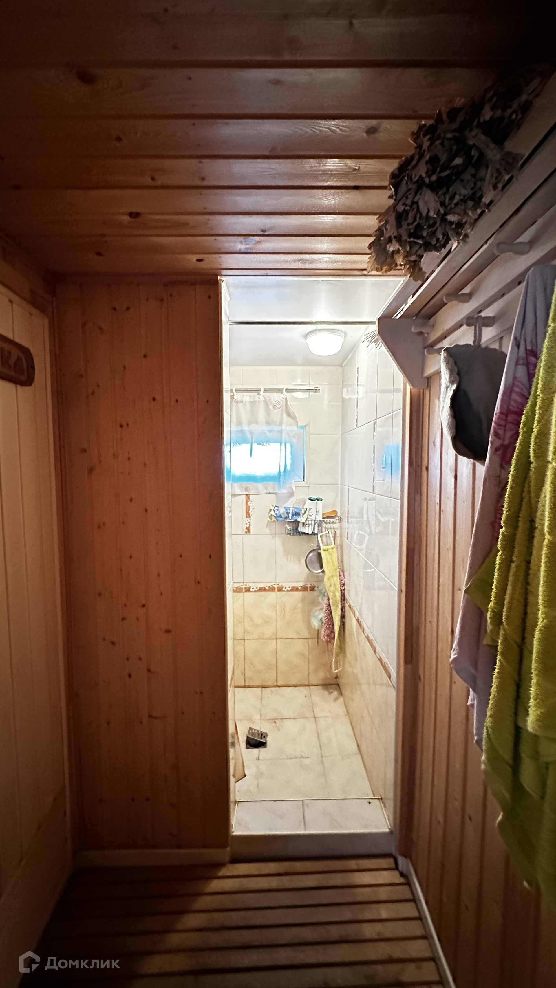 Внутри стены на первом этаже обшиты выгонкой, пол-ламинат, на втором этаже стены выровнены и поклеены обои, пол-ламинат. Окна в доме-бани установлены пластиковые. Печь в парной на дровах.
