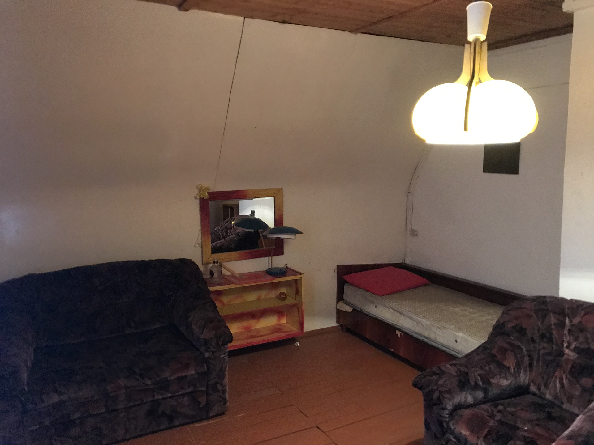55 км от МКАд по Минскому шоссе. Одинцовский городской округ, садовое товарищество Ветеран, рядом с ж\д станцией Полушкино. Продаётся дом построенный по каркасной технологии из бруса (каркас) утепленный на ленточном фундаменте. Дом стоит  на лесном участке 21 сотка.  Год постройки 2003. На 1 этаже: 2 спальни, гостиная, кухня, прихожая и совместный с/у. На 2 этаже: 2 спальни, балкон и застекленная веранда около 30 кв.м. с окнами на 3 стороны. Дом отапливается печкой  и камином + электрические конвектора. Электричество 30 кВт три фазы. Вода подается из колодца который на двоих с соседом плюс общий водопровод от скважины СНТ.  Канализация септик. Территория визуально разделена на 3 зоны: лесная с оборудованным местом для костра (10 соток), солнечная лужайка (4 сотки) и сад с плодовыми деревьями (6 соток) - яблони, сливы, груша и плодовые кусты. Соседи с 2-х сторон. Участок непосредственно граничит с лесополосой (выход в лес) На территории участка имеется баня - 15кв.м, кладовая для инструментов и садового инвентаря, уличный туалет. До станции Полушкино до участка 15-20 минут пешком