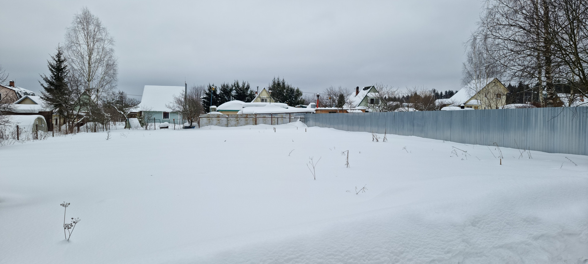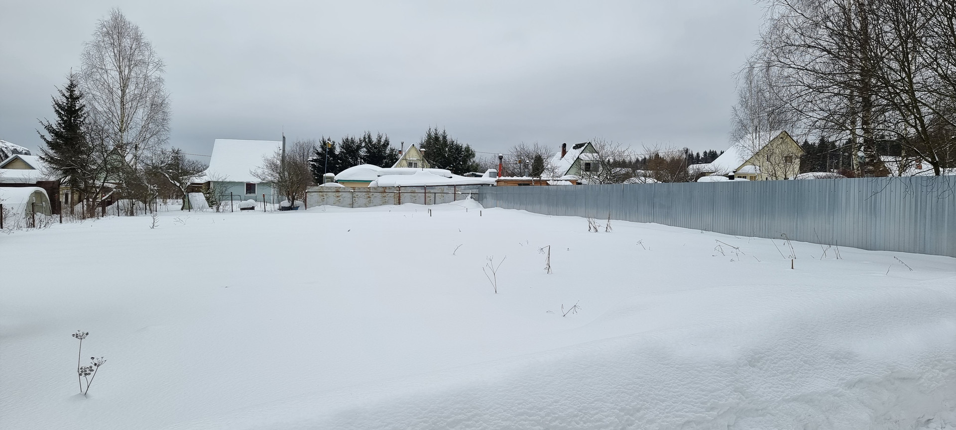Забор с двух сторон профлист и с одной сетка рабица.