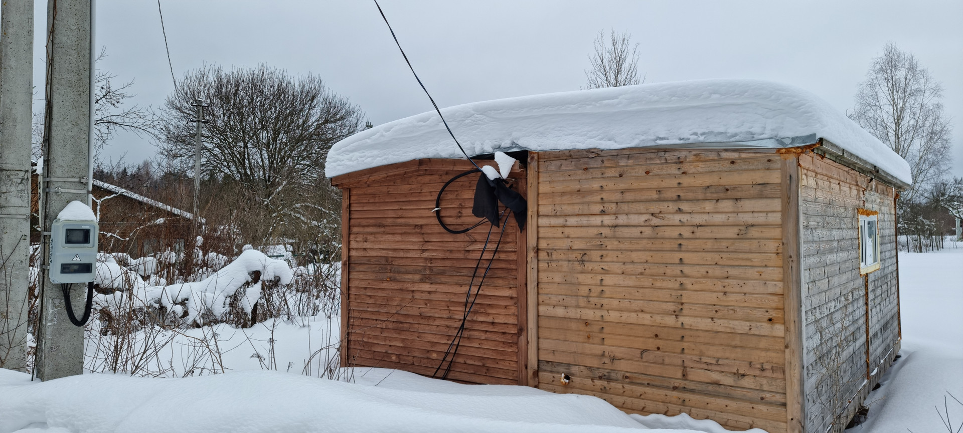 На участке расположены две бытовки, одна новая вторая нет. Электричество заведено в бытовку.