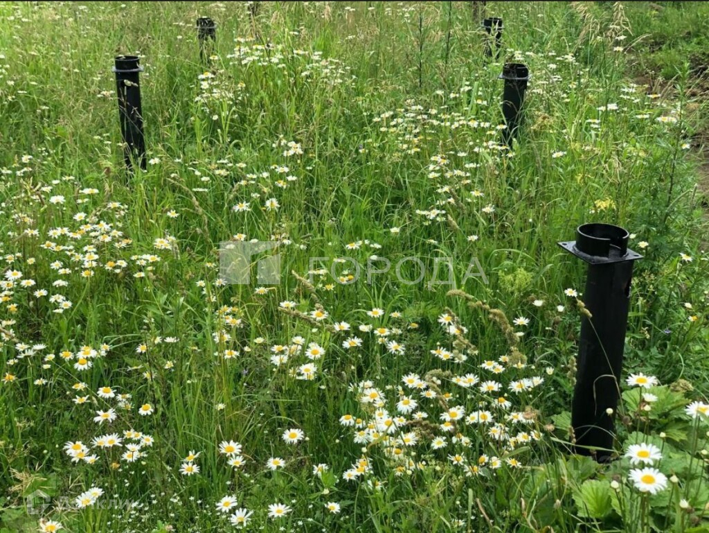 Участок ровный, имеет забуренные сваи под фундамент дома.