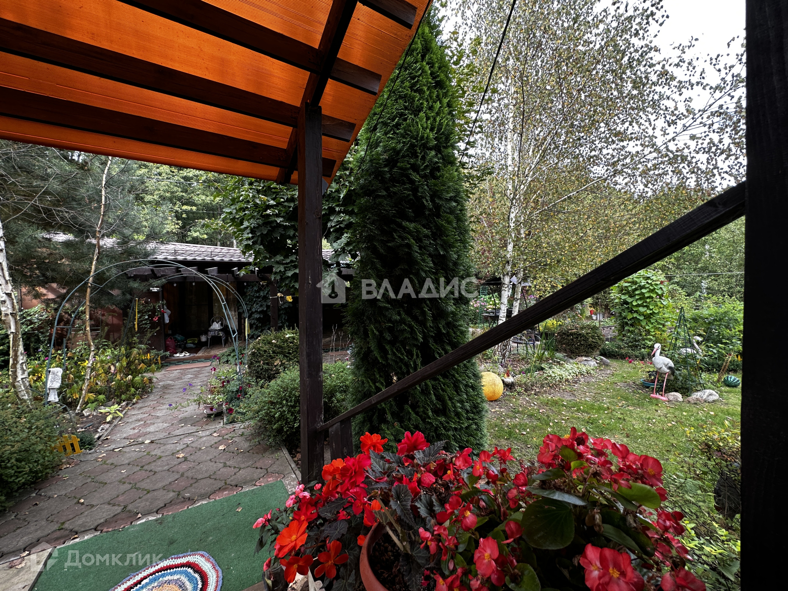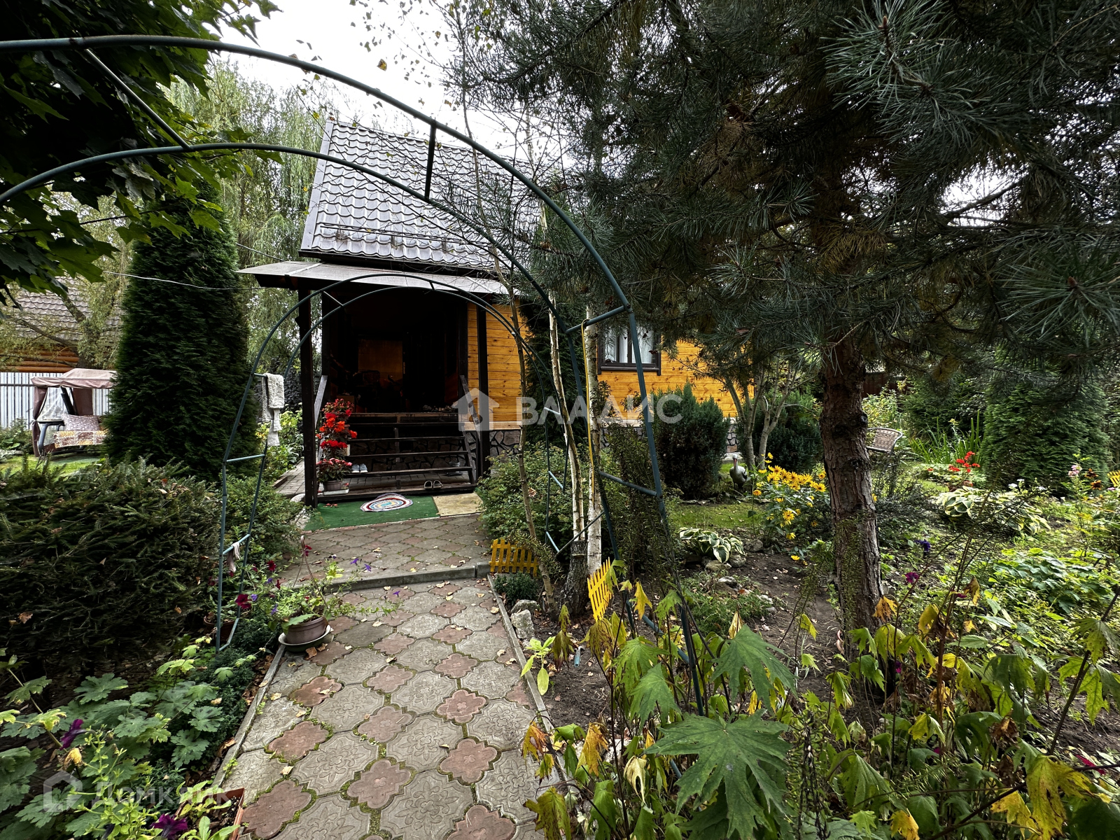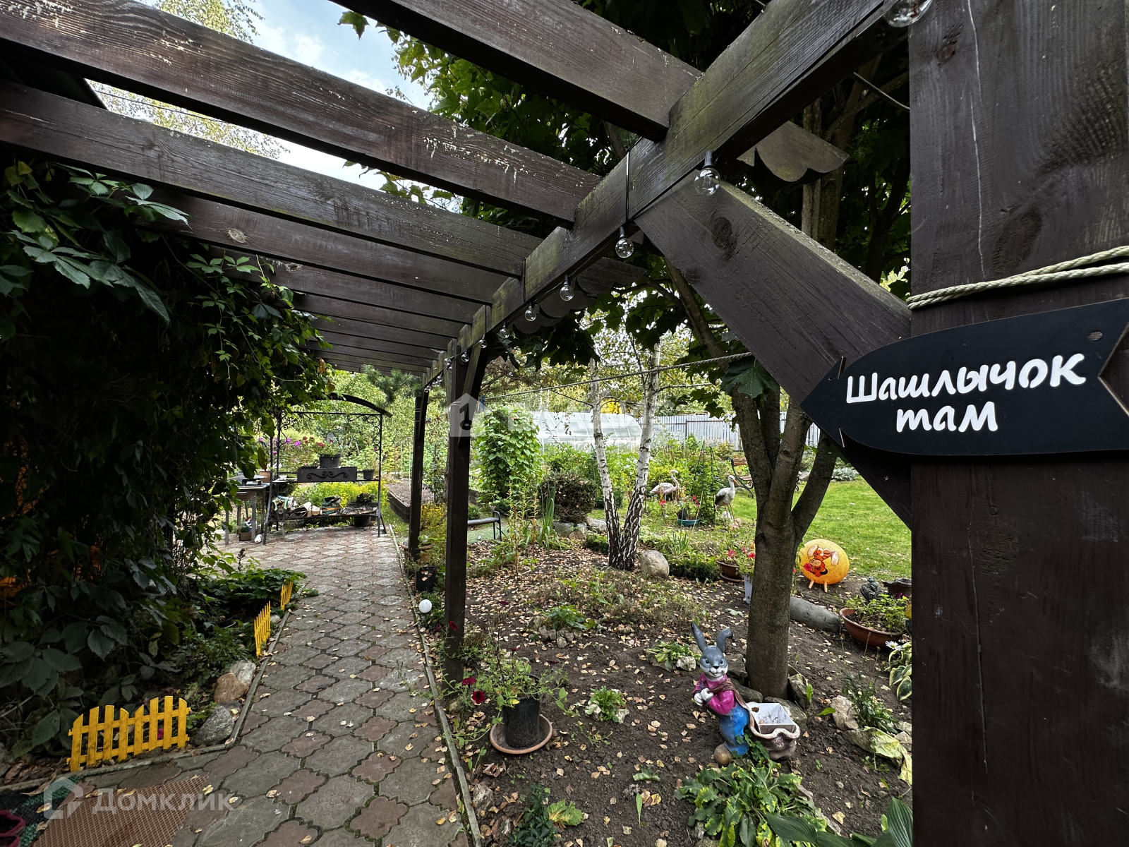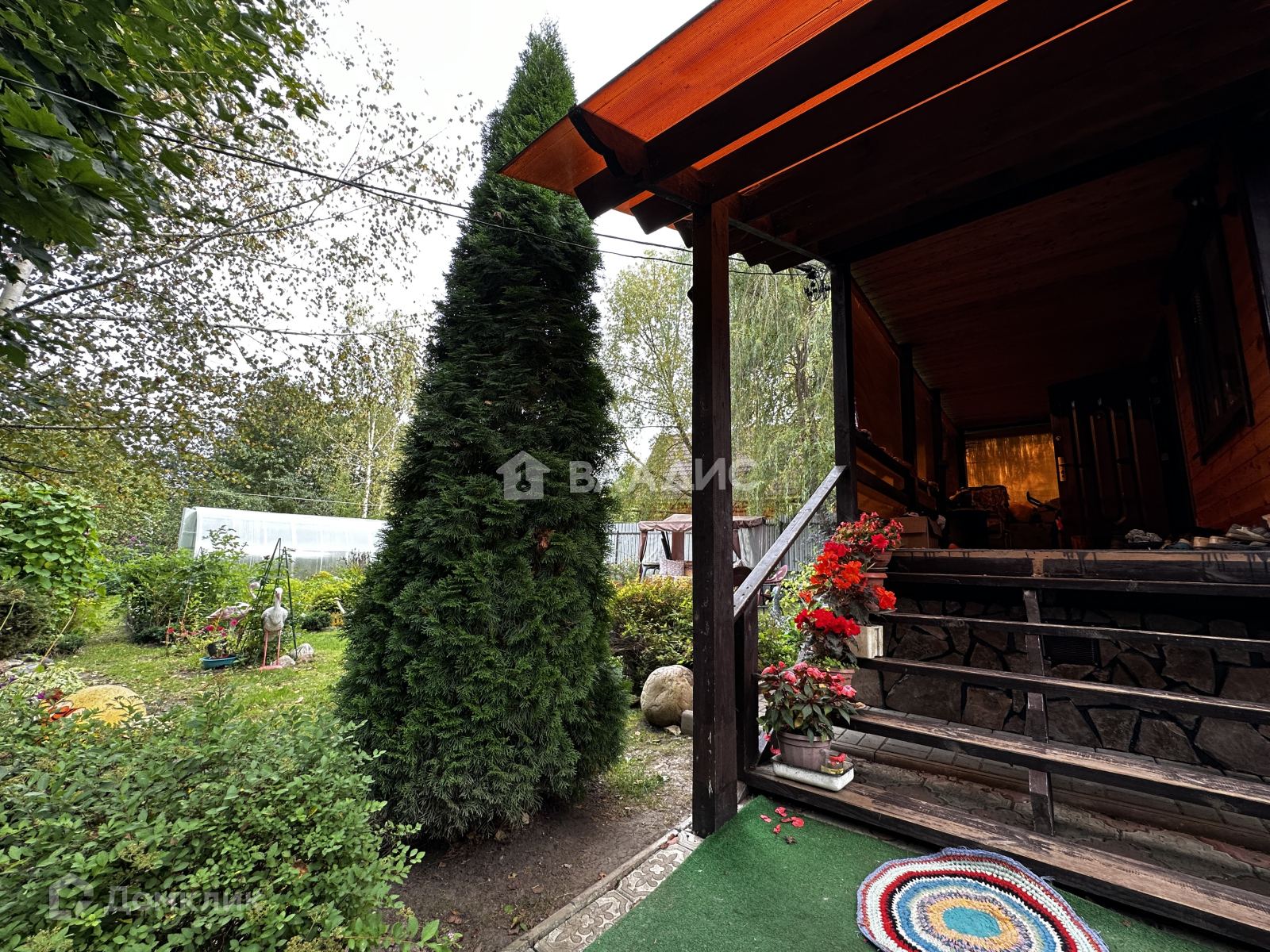 Удачное расположение - участок угловой. При въезде есть навес под машину. На участке много плодовых деревьев и кустарников, растут ягоды, овощи. Есть дровница, теплица.