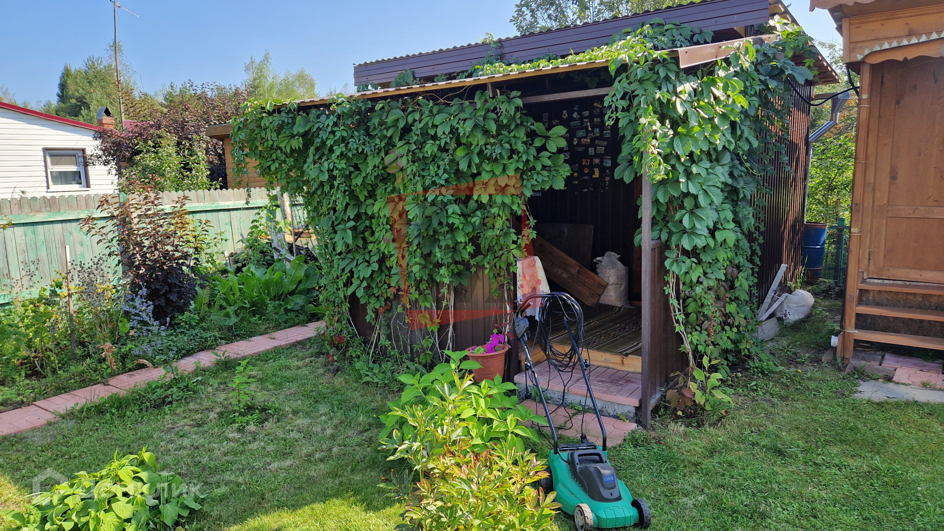 На территории водопровод, растут яблони, малина, смородина и др. плодовые насаждения.